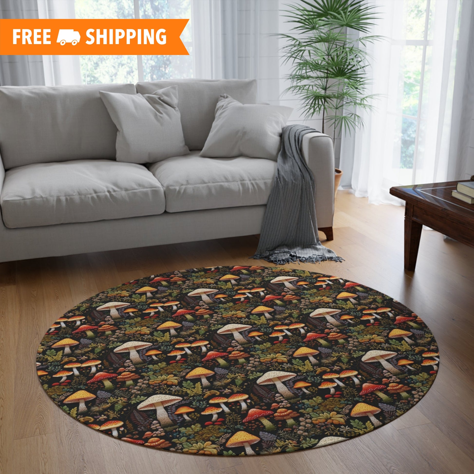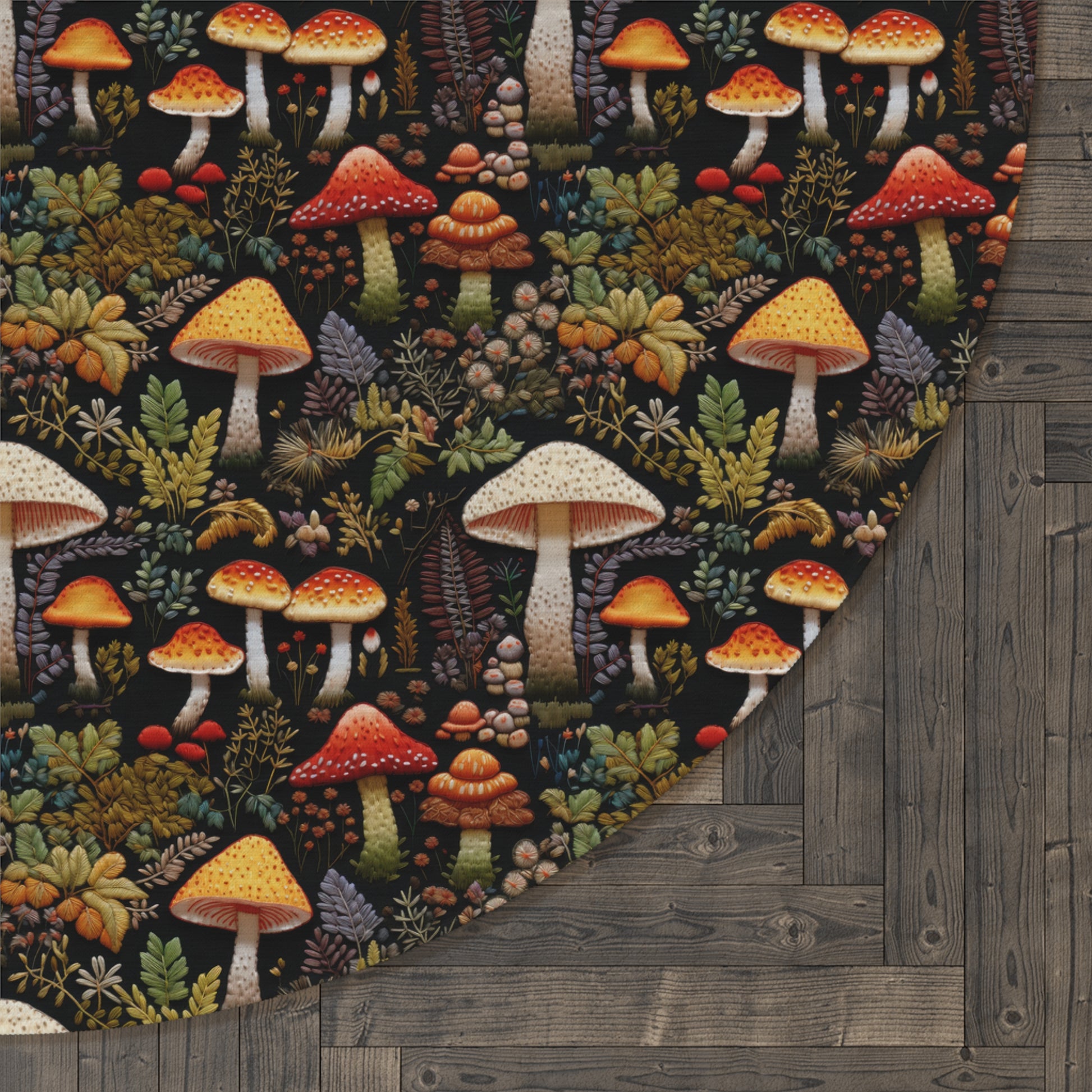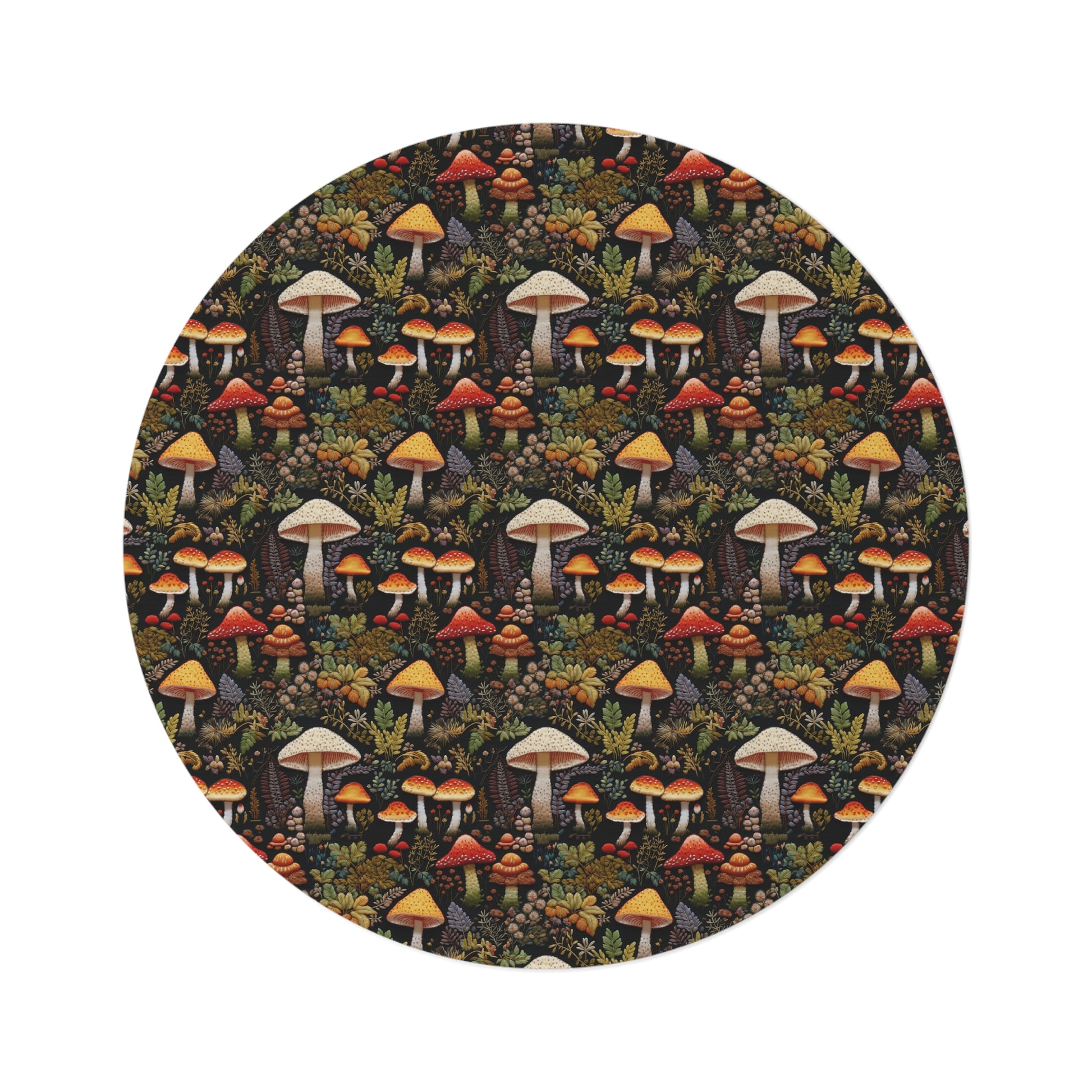 Forest Mushrooms Embroidery Pattern Round Area Rug
