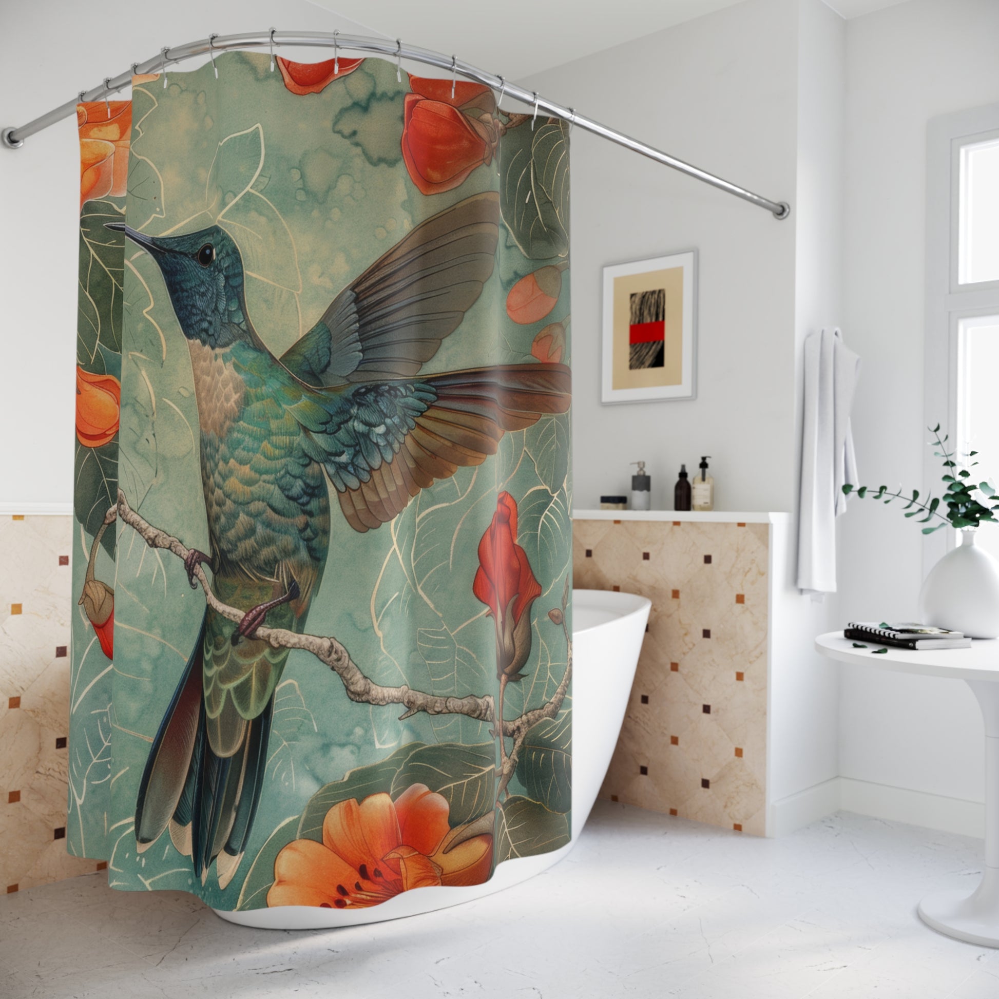 Hummingbird Art Deco Print Shower Curtain, Housewarming Gift