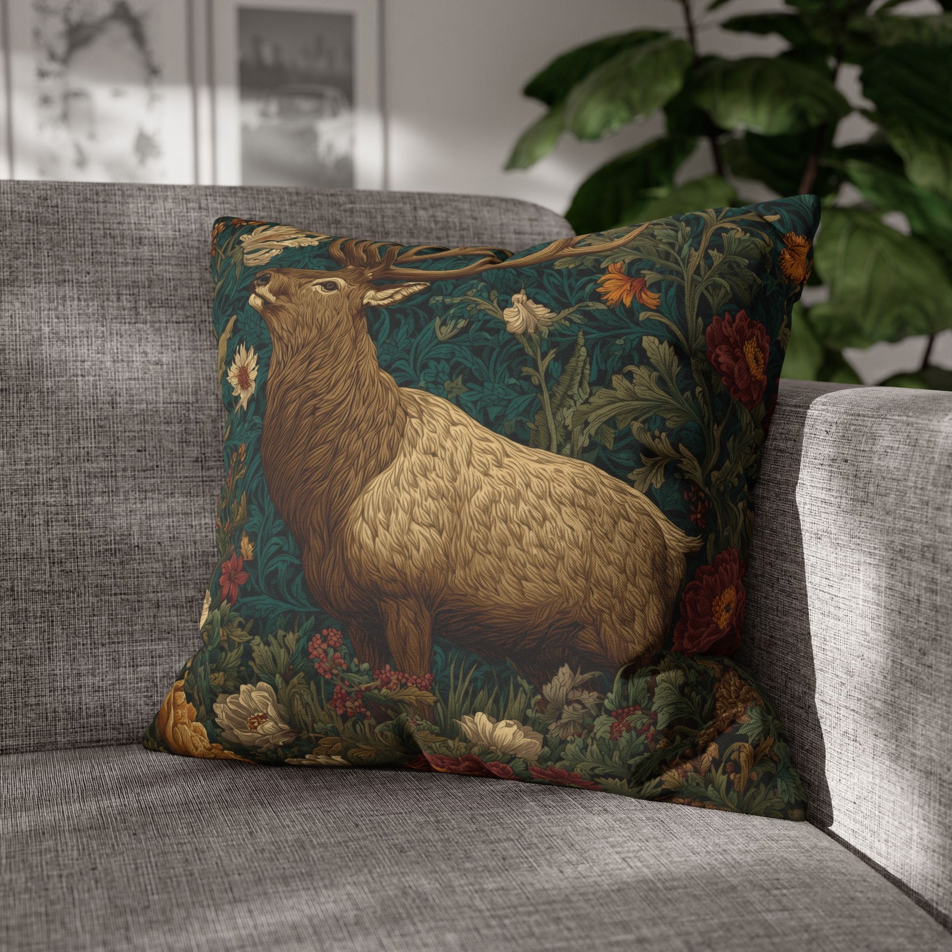 Product Name Majestic Elk Floral Pillow – William Morris Inspired Woodland Deer Cushion