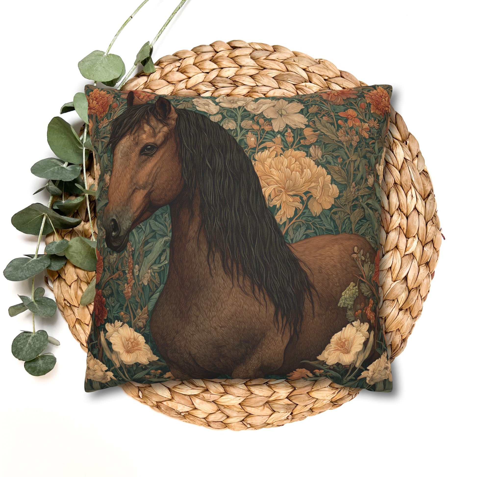 This pillow is perfect for horse lovers, equestrian décor, cottagecore homes, botanical art enthusiasts, rustic cabin interiors, and anyone who appreciates classic art with a modern decorative twist.