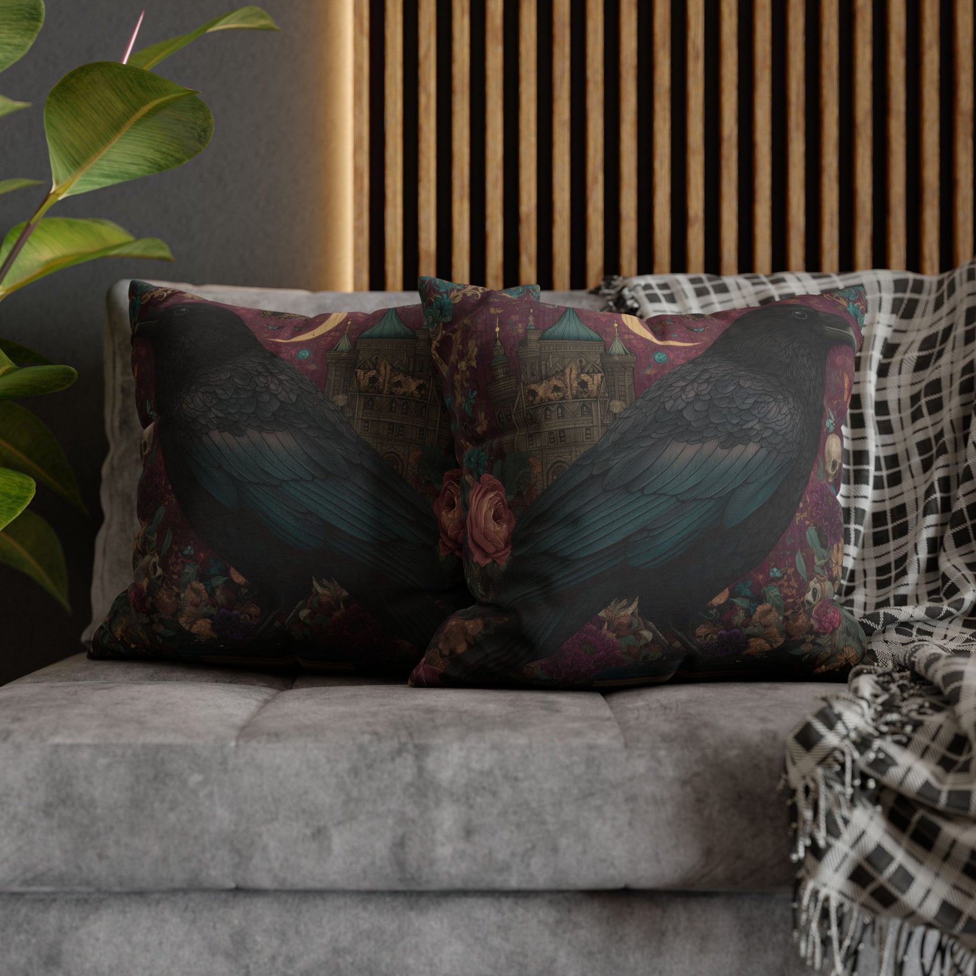 Transform your space with a touch of dark enchantment with this Mystical Raven Pillow. Featuring an intricately illustrated raven perched among florals, vintage books, and an ornate gothic castle under a crescent moon, this pillow is the perfect blend of dark academia, fantasy, and elegance. Whether you're decorating for fall, Halloween, or simply love magical forestcore and mysterious bird motifs, this pillow adds an artistic and cozy touch to your home. The double-sided print offers versatile styling, and the high-quality polyester ensures durability, comfort, and long-lasting charm. Great as a gift for gothic decor lovers, bookworms, or anyone who finds beauty in the mysterious. Product Features * 100% spun polyester fabric for long-lasting color and shape retention * Double-sided vibrant print with intricate raven and castle design * Hidden beige plastic zipper with a polished metal pull * Comes unassembled to reduce creases in shipping * Insert made from 100% recycled polyester (if selected) * Fast Shipping and Print in the USA * Graphic will be Printed on Both Sides of the Pillow Available Options: * Polyester cover only * Polyester cover + insert * Polyester outdoor pillow (weather-resistant) Perfect for: * Halloween and fall decor * Gothic, dark academia, forestcore, or fantasy-inspired interiors * Living rooms, bedrooms, reading nooks * Unique housewarming or seasonal gifts Care Instructions * Remove cover before cleaning * Pre-treat stains with soft cloth soaked in warm soapy water * Machine wash cover at max 40°C (104°F), normal cycle * Do not bleach or dry clean * Tumble dry low, iron or steam on low heat * Fluff insert and reshape after assembly