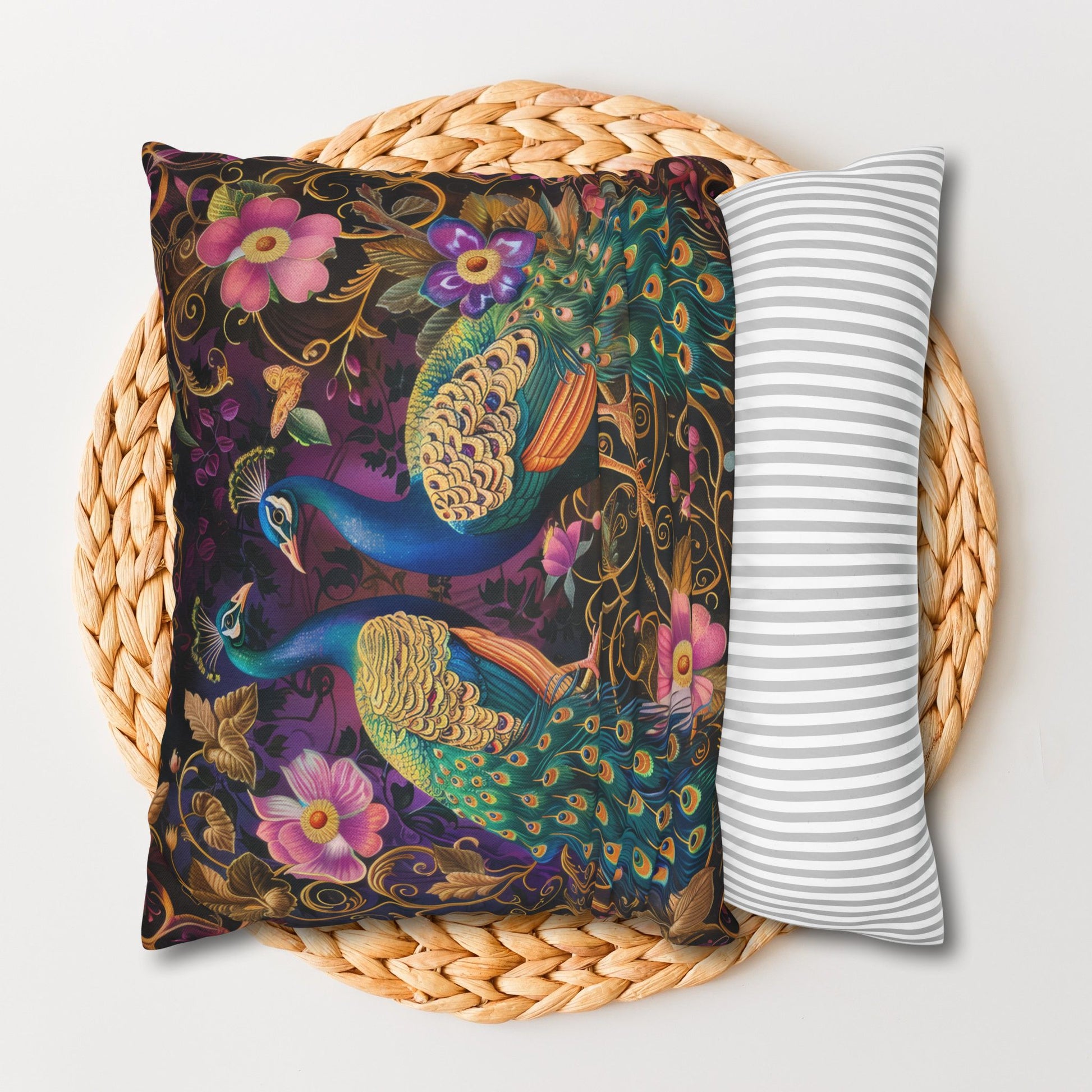 Victorian-inspired Peacock and Pink Floral decorative pillowcase, perfect for adding a touch of elegance to your home decor. William Morris inspired design gives a classic and sophisticated vibe, ideal for those who appreciate intricate patterns and vintage aesthetics. Relevant for home decor enthusiasts, those celebrating Victorian-themed parties or events, and those who enjoy unique and ornate designs. Perfect for adding a pop of color to your living space or bedroom.