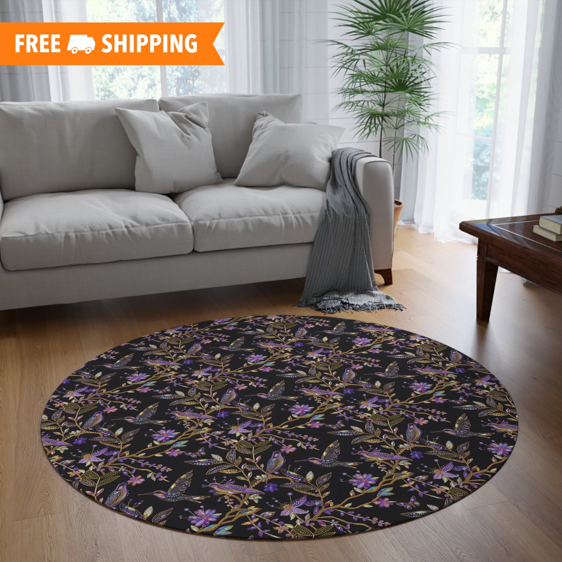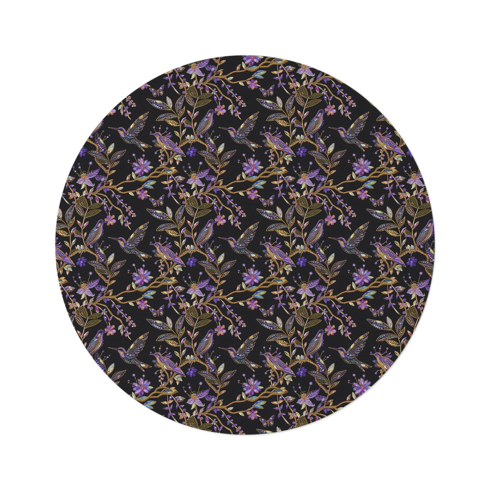 Purple Crystal Hummingbird Embroidery Seamless Pattern Round Area Rug