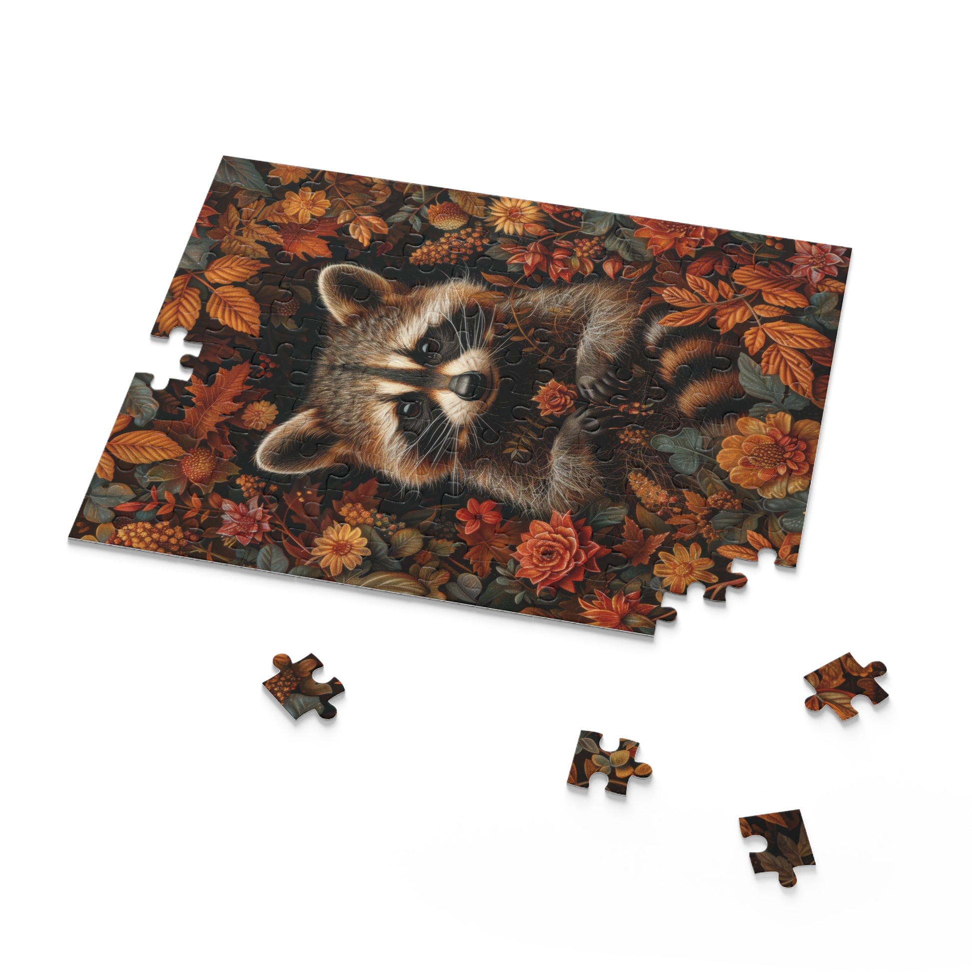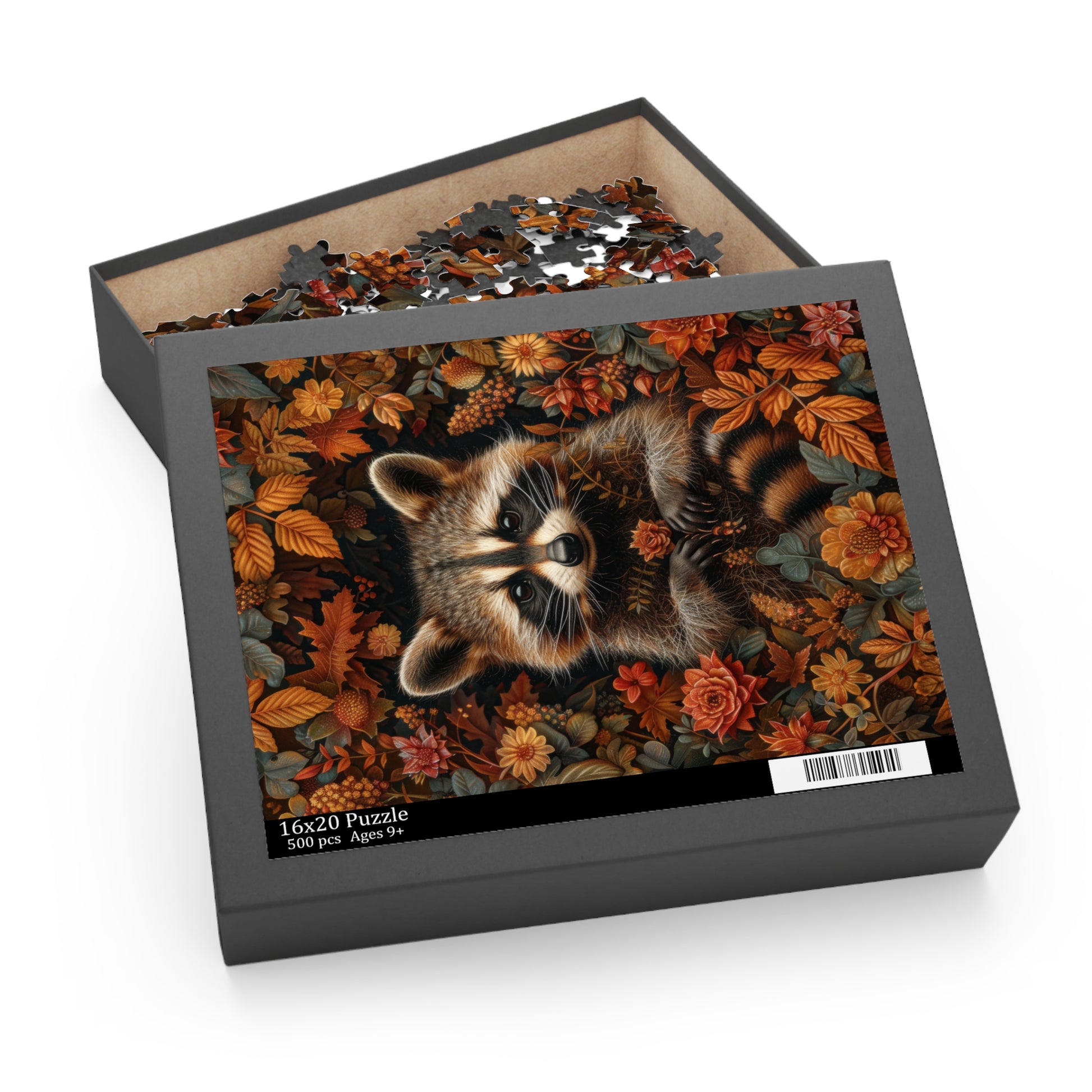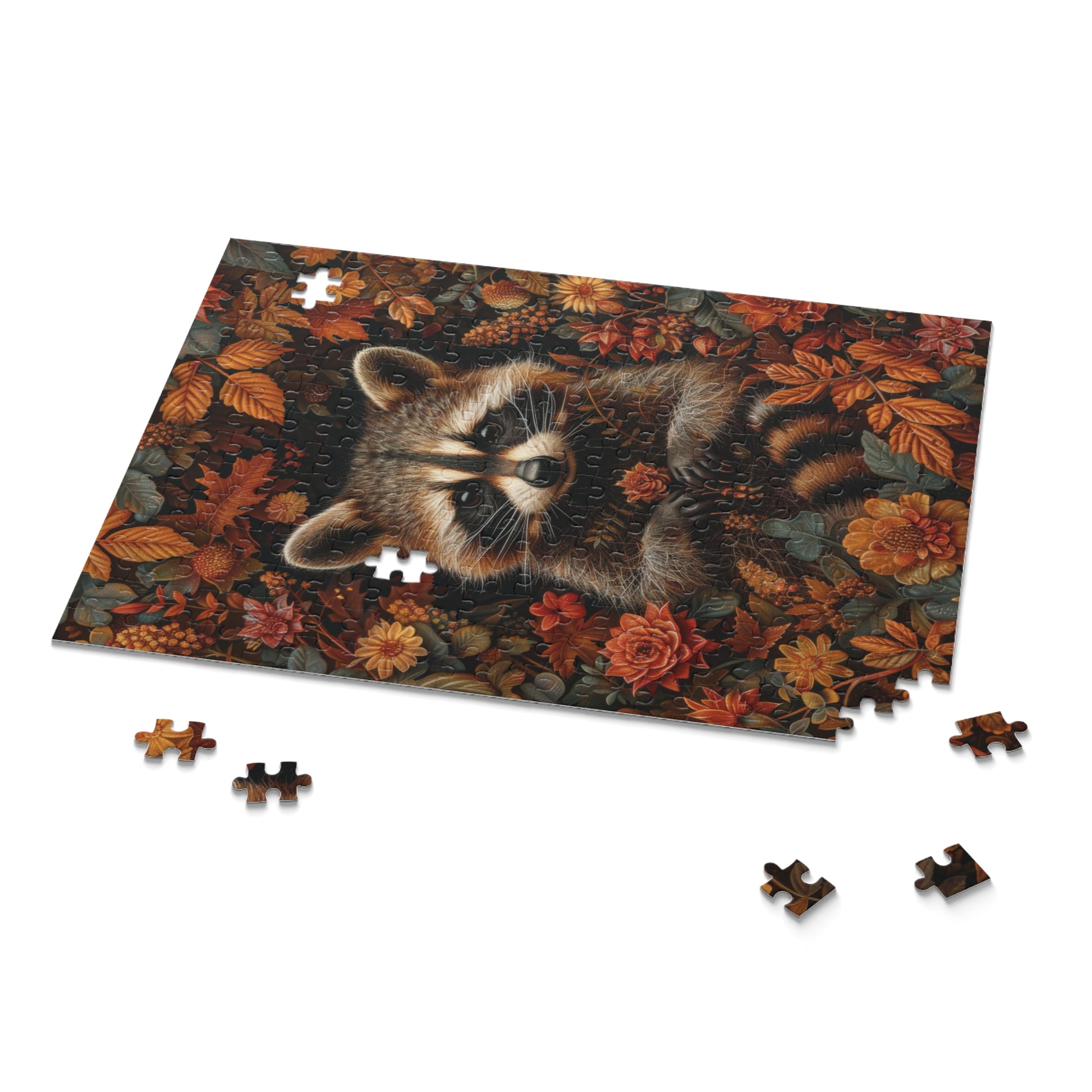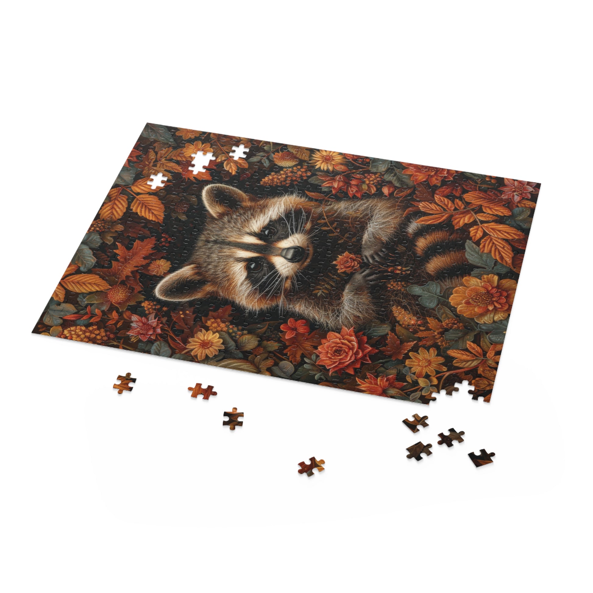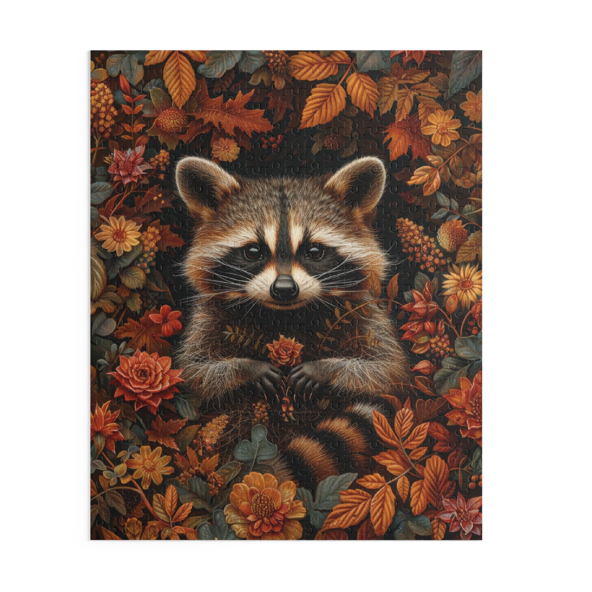 🦝 Fall Raccoon Puzzle – Woodland Botanical Jigsaw (120, 252, 500 Pieces)