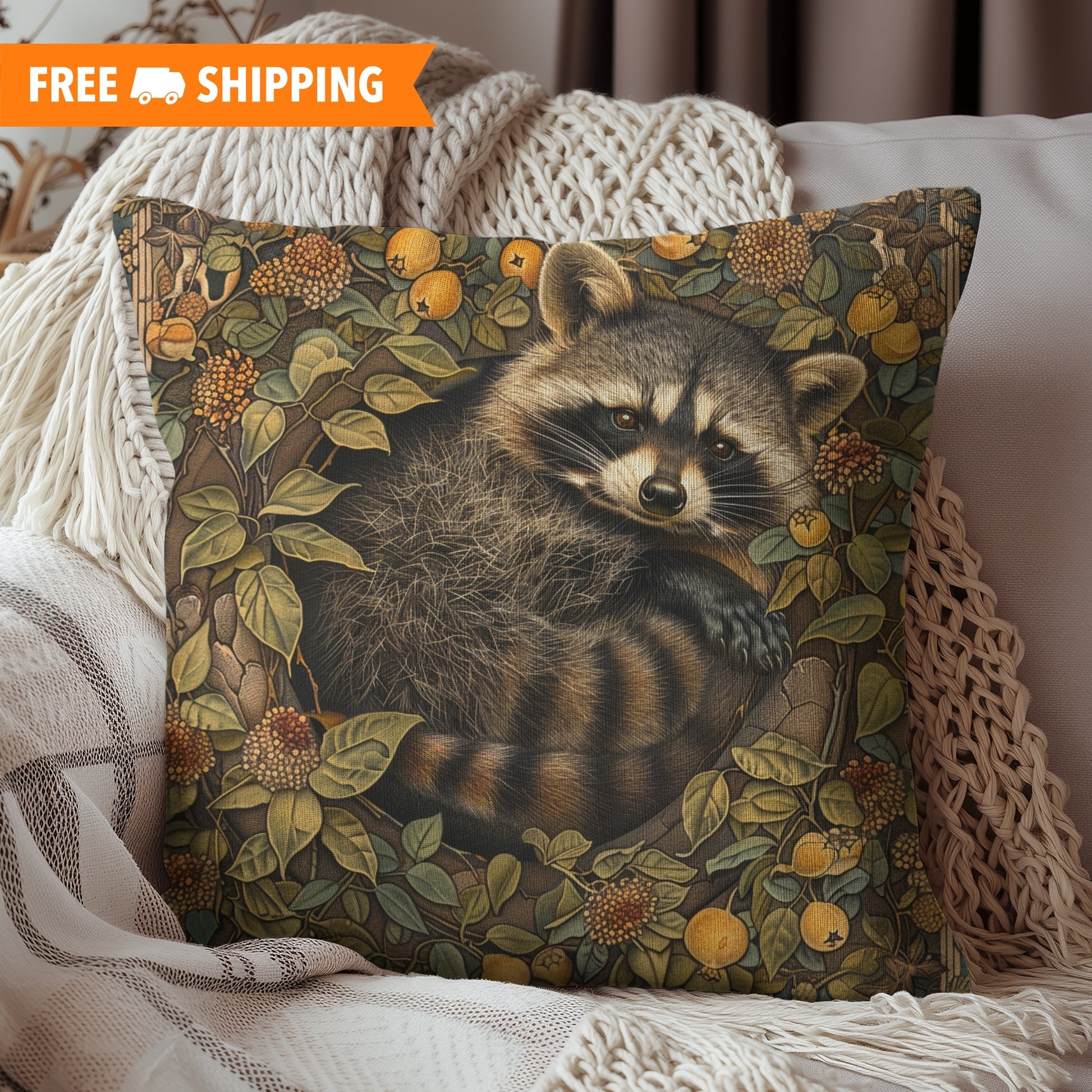Raccoon William Morris Inspired | Raccoon Ancient Decorative Pillow