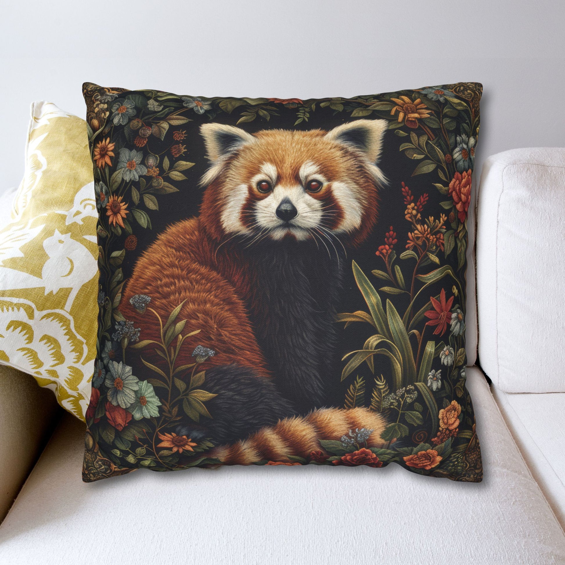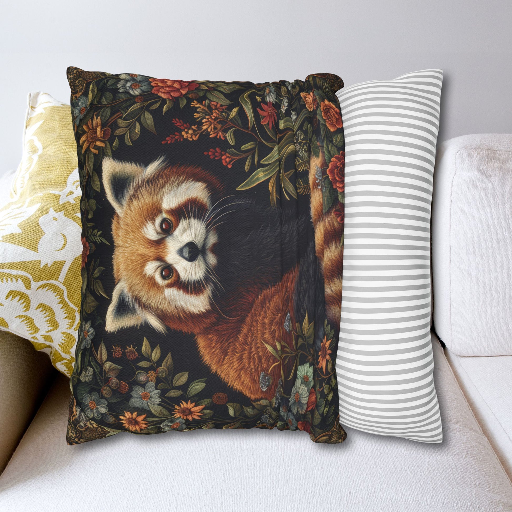 Red Panda Throw Pillowcase: William Morris Rustic Floral Accent Cushion