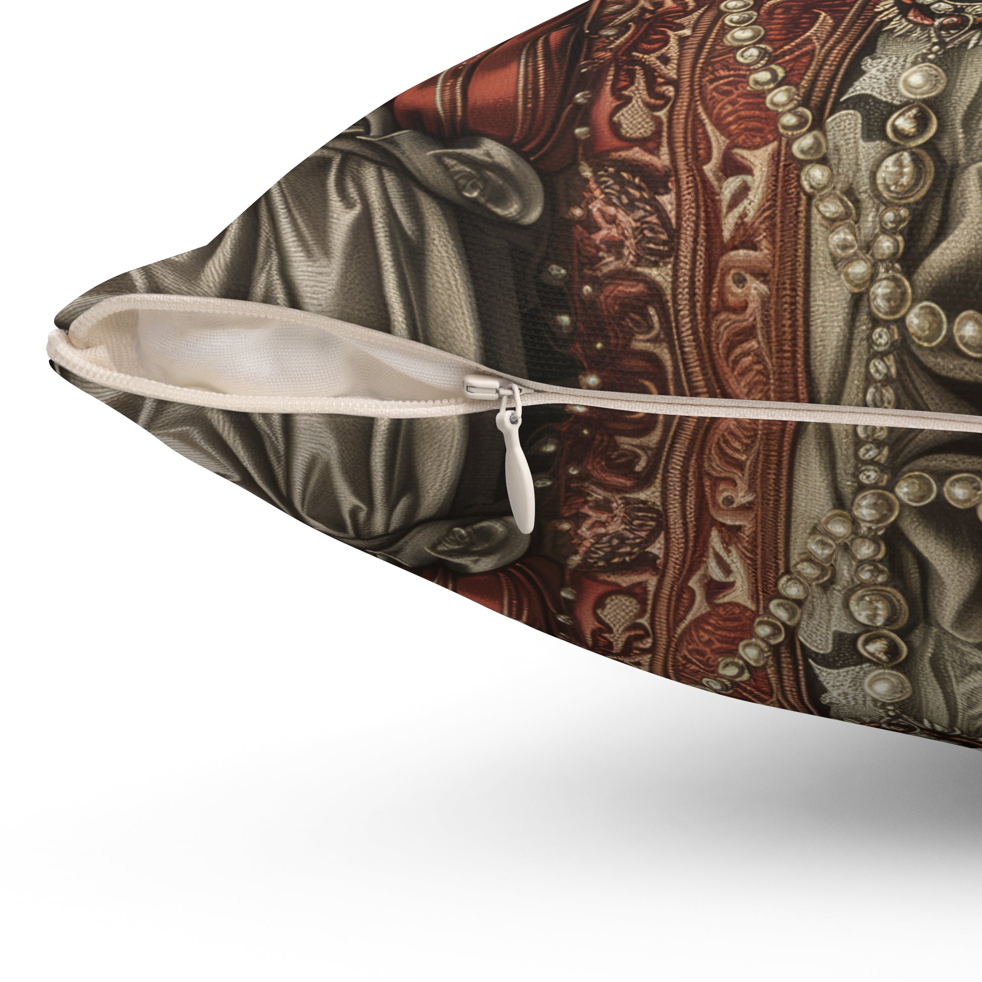 Elevate your home décor with a touch of royal charm. This elegant pillow features a noble cat dressed in a Renaissance gown, adorned with pearls, lace, and a sparkling crown. A whimsical yet sophisticated piece, it blends art, humor, and coziness—perfect for cat lovers and fans of unique home accents.