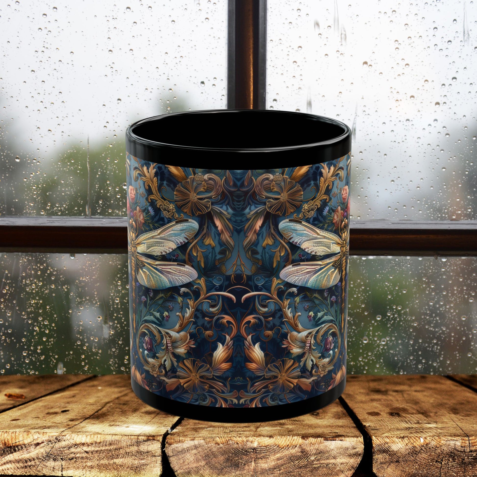Dragonfly Indigo Ornate William Morris Inspired | Cottage-core Mug 11oz, 15oz