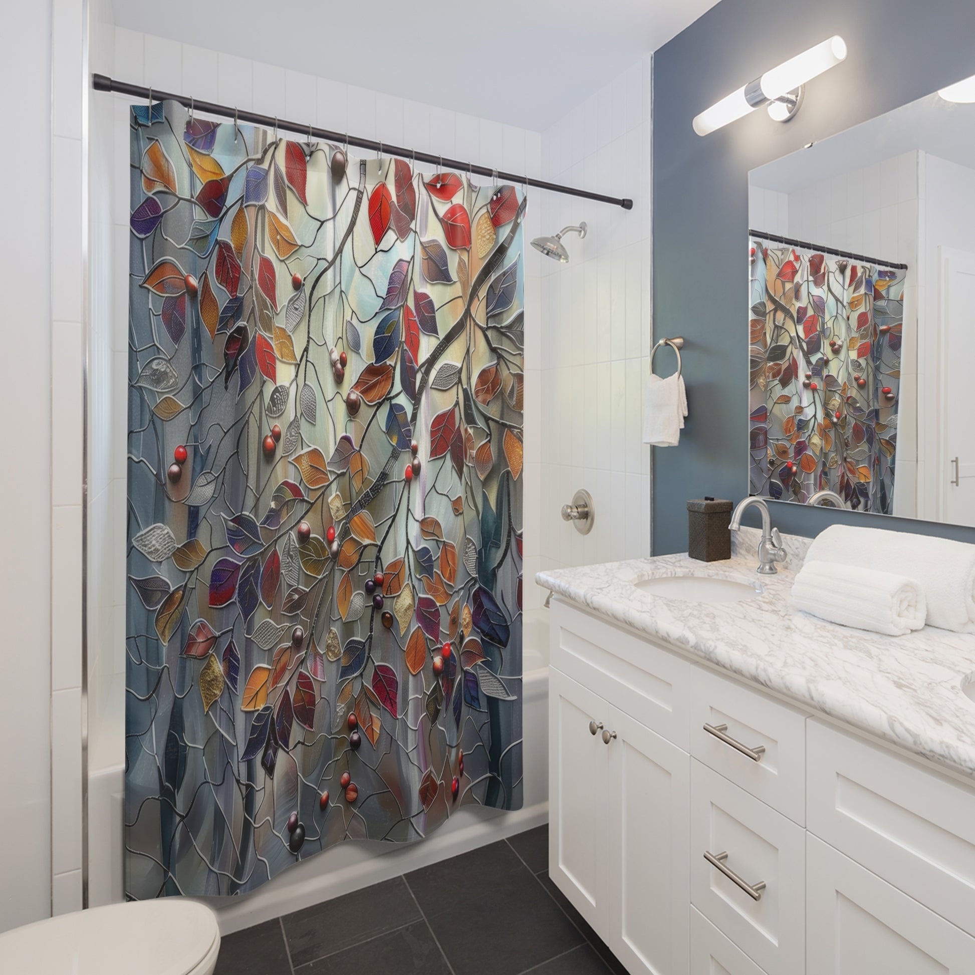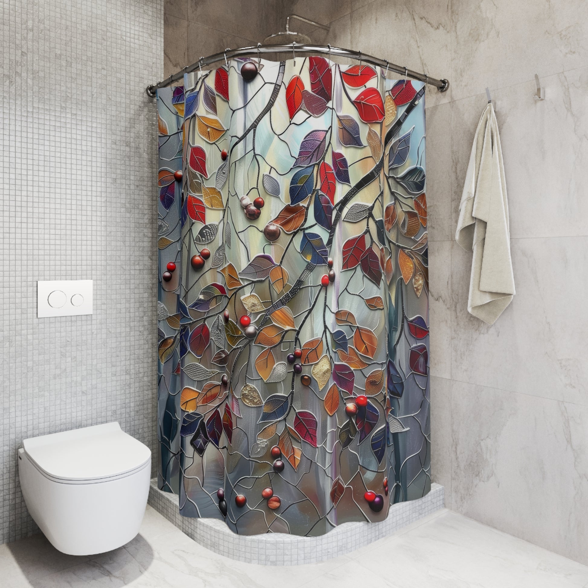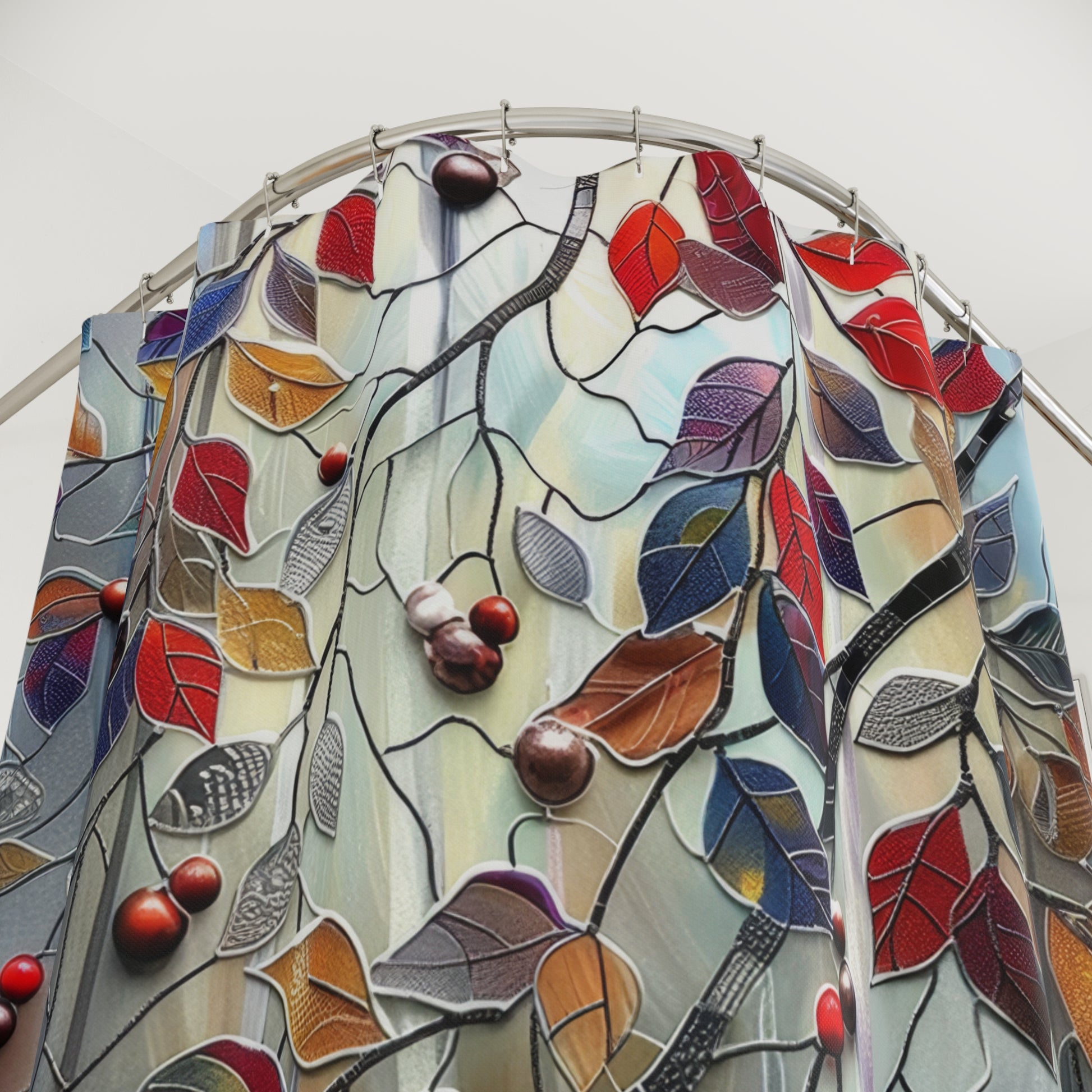 Stained Glass Fall Leaves And Berries Polyester Shower Curtain