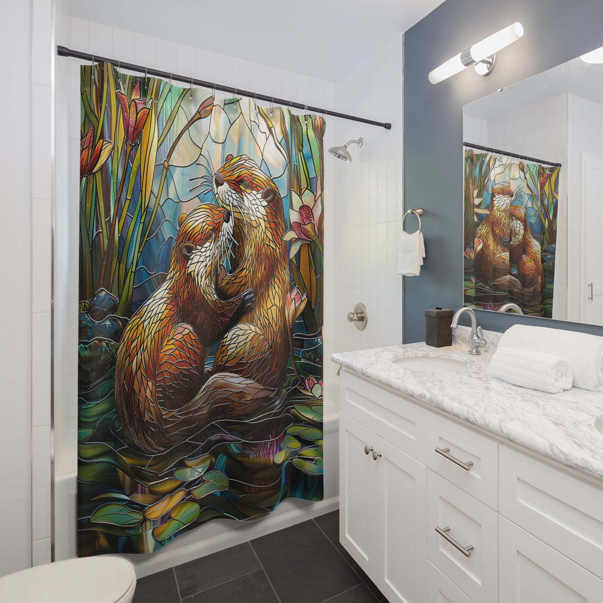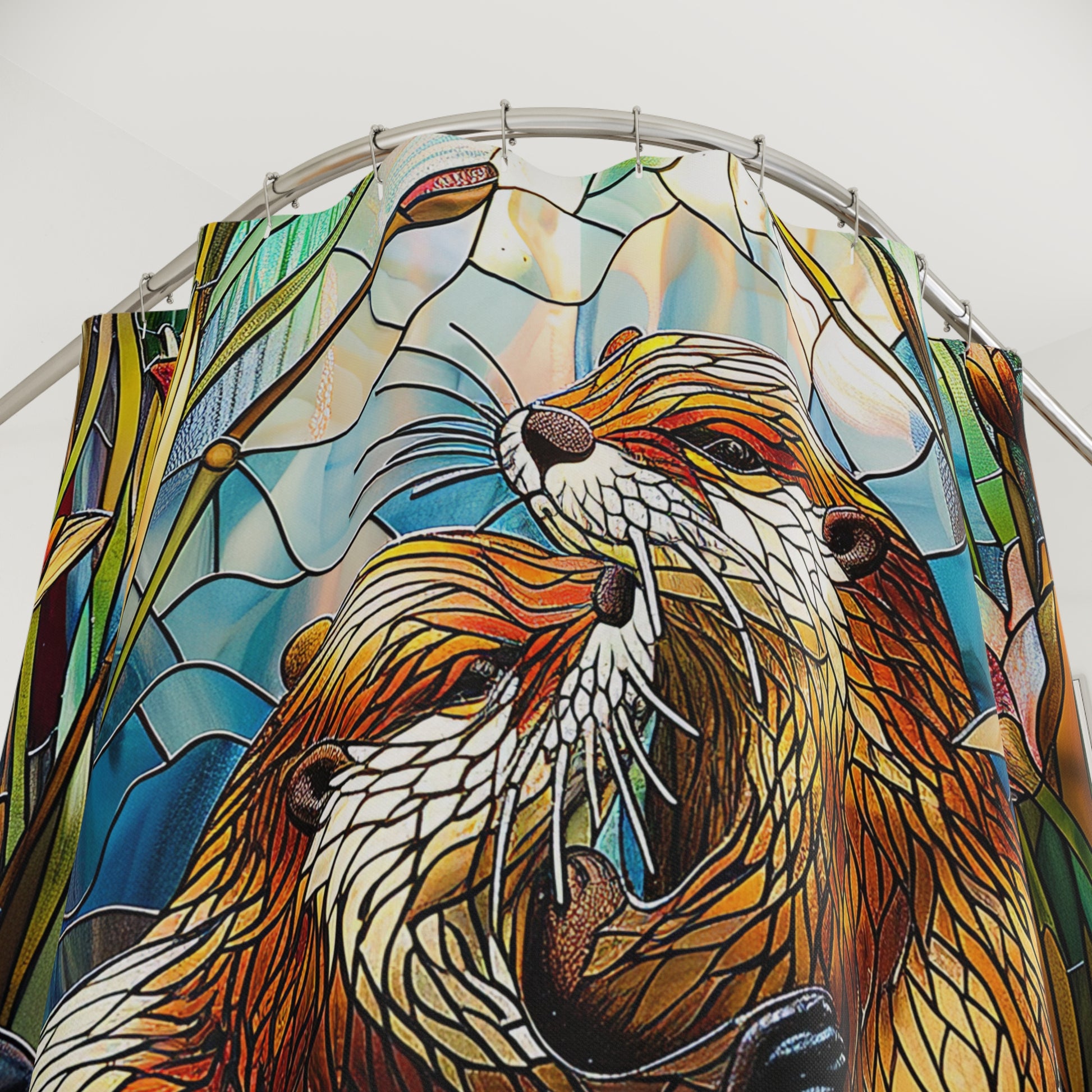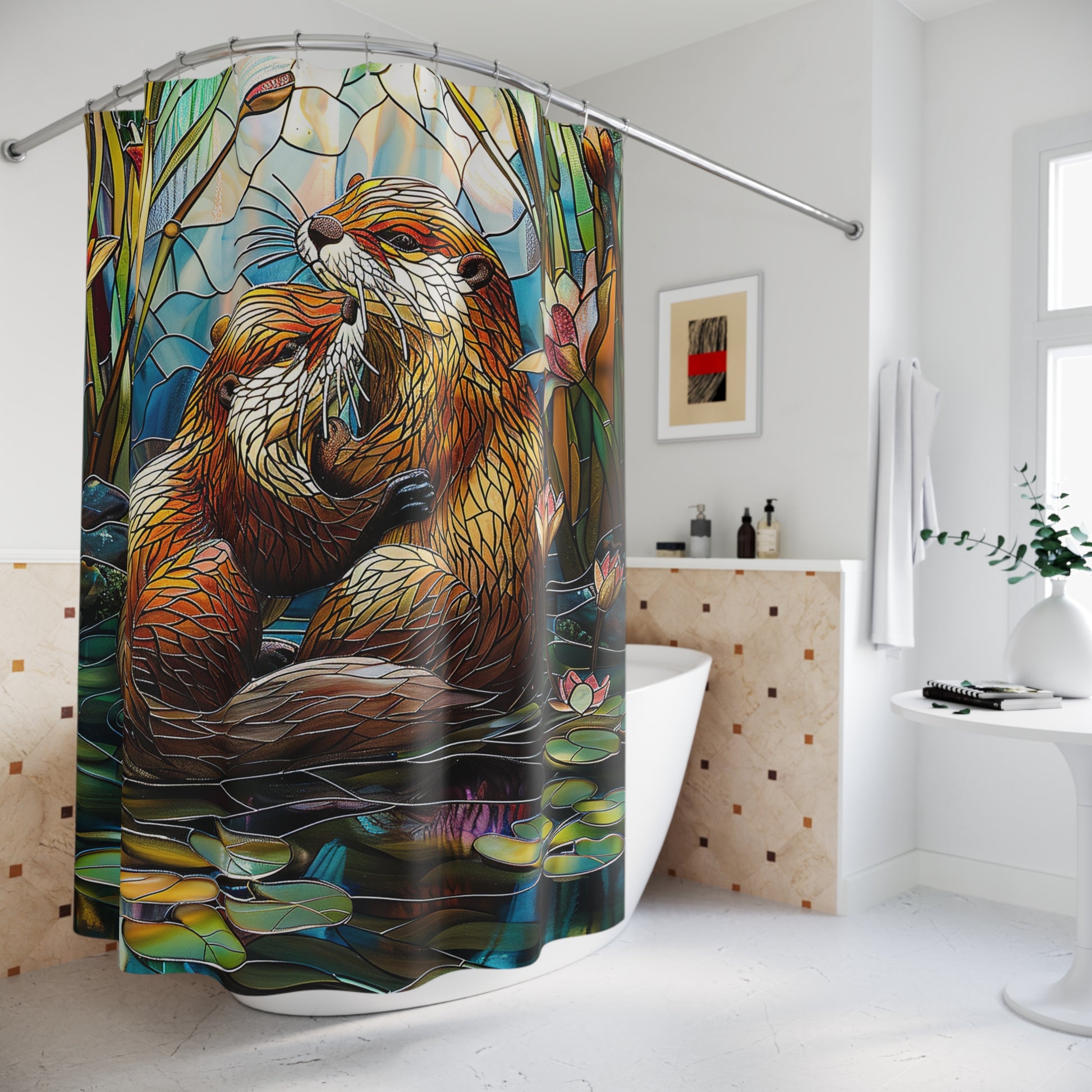 Stained Glass Otters Water Lilies, Polyester Shower Curtain
