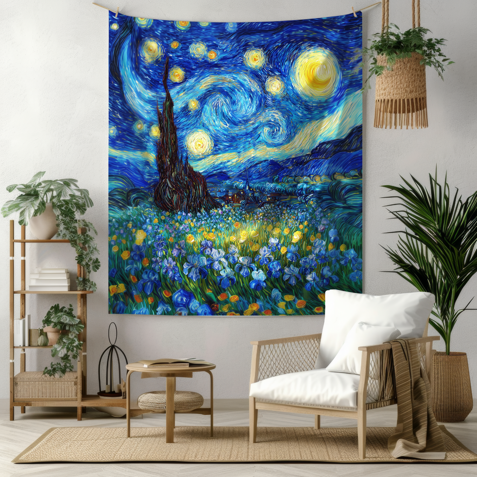 🌌 starry night tapestry 🎨 van gogh wall art 🏡 artistic home decor 🌺 floral wall hanging 🛋️ living room tapestry 🖼️ bedroom wall art 🌙 starry night wall decor 🎁 gift for art lovers 🪄 creative wall tapestry ✨ boho wall decor 🌿 modern wall hanging 🎨 blue wall tapestry 🪞 large wall art