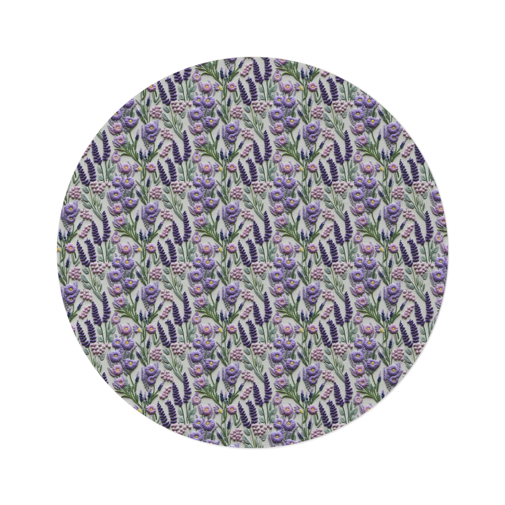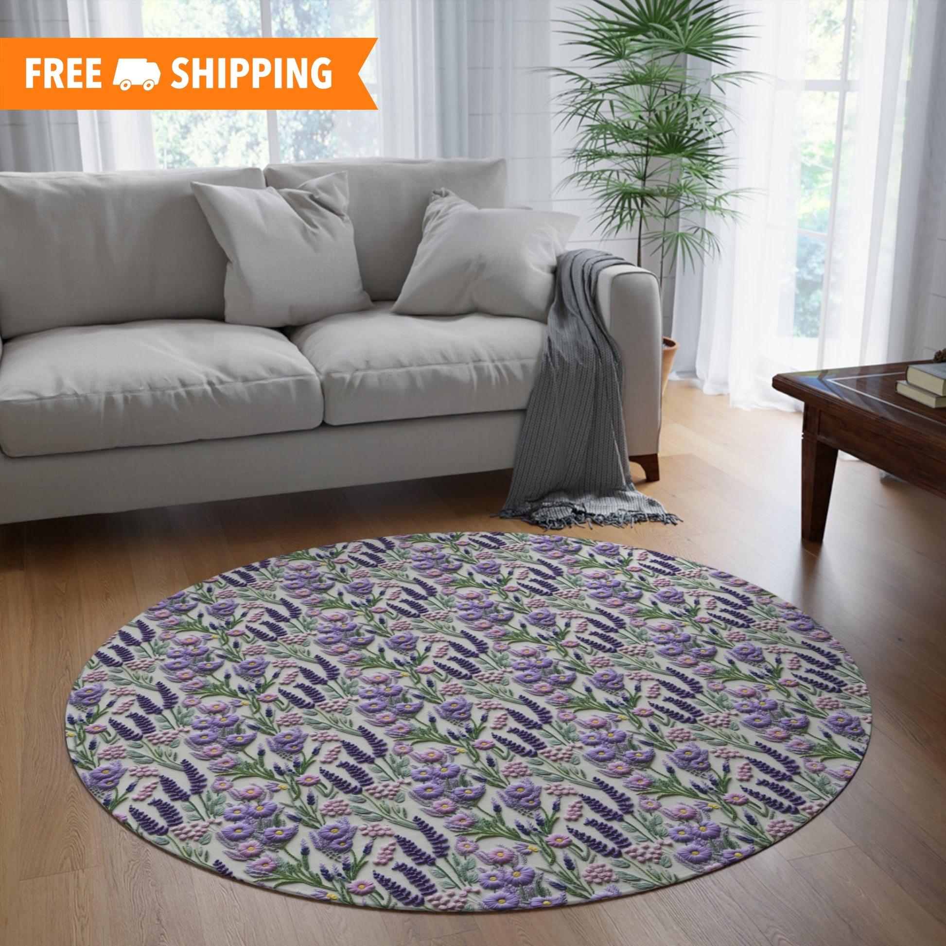 Sweet Larvender Embroidery Pattern Round Area Rug, Housewarming Gift