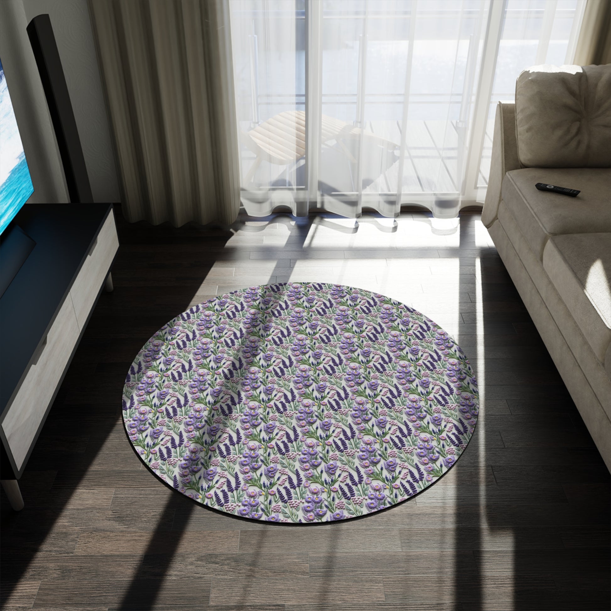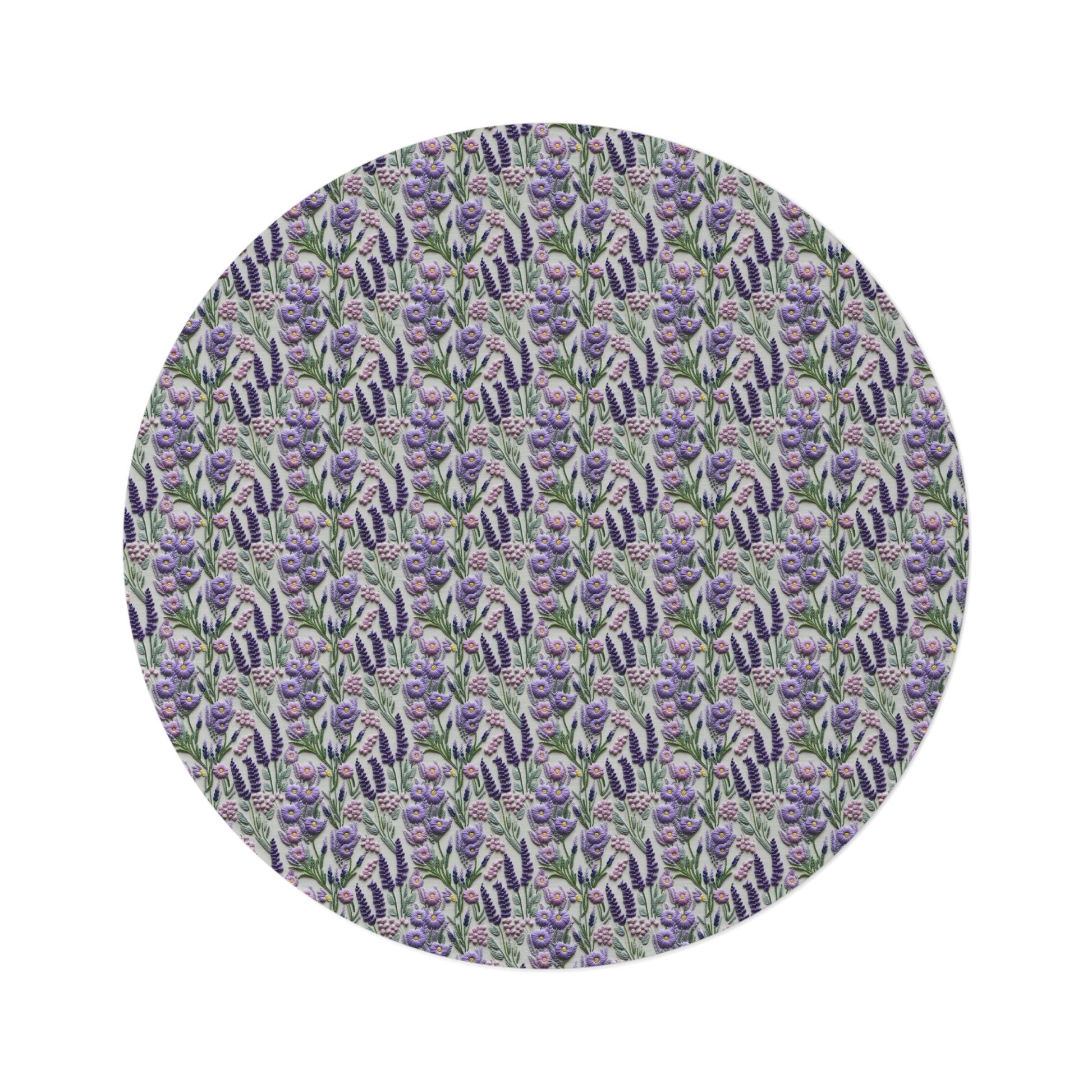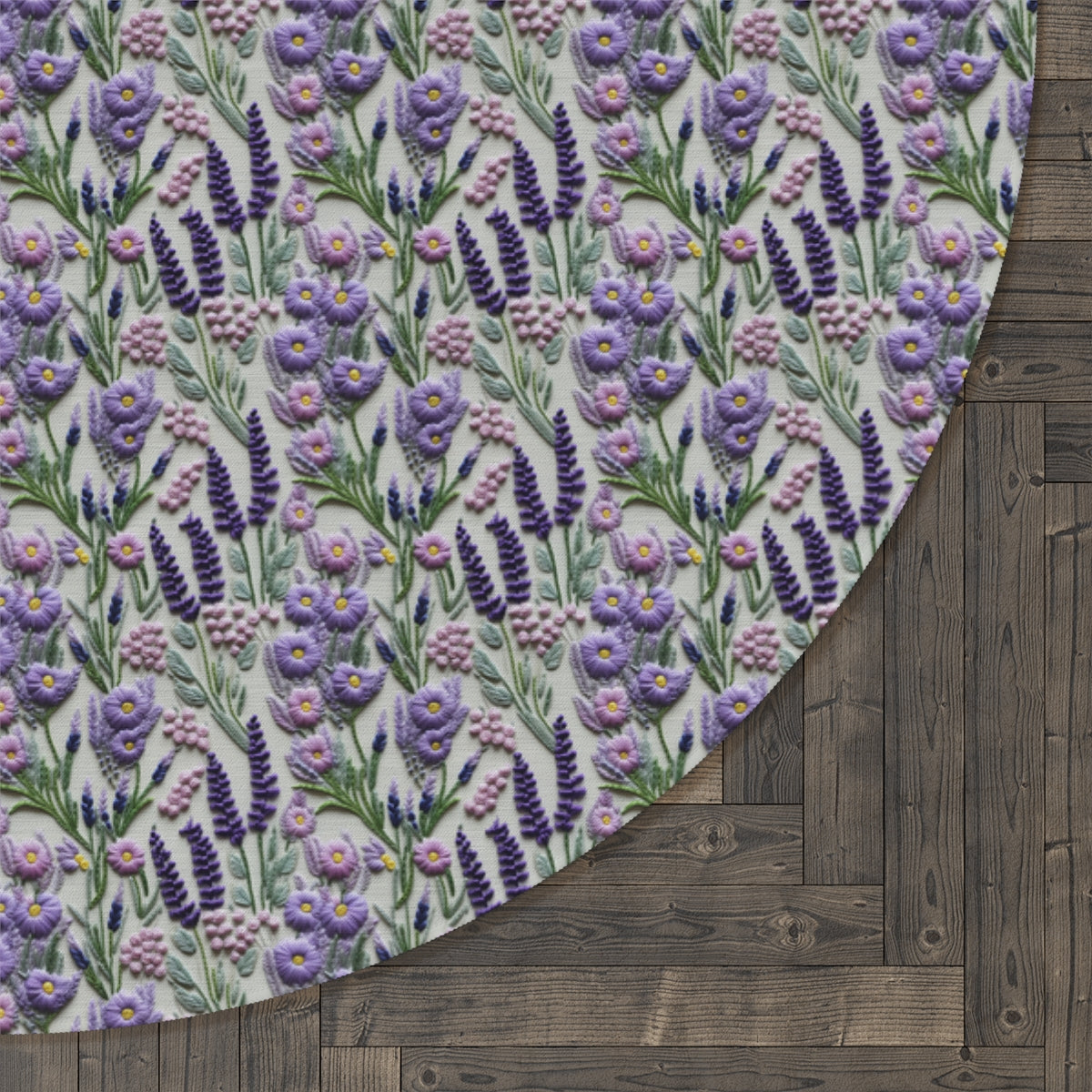 Sweet Lavender Embroidery Pattern Round Area Rug, Housewarming Gift