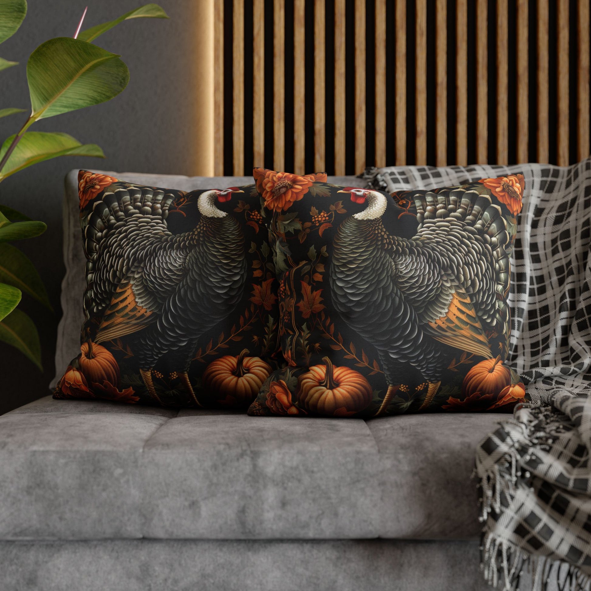 Product Description Celebrate the beauty of fall with this Thanksgiving Turkey Pillow. Featuring a richly detailed illustration of a majestic turkey surrounded by golden sunflowers, autumn leaves, and pumpkins, this pillow perfectly captures the spirit of the harvest season. The warm, earthy tones and elegant detailing make it an inviting accent for any room—ideal for Thanksgiving gatherings, farmhouse-style homes, or anyone who loves cozy seasonal decor. Place it on your sofa, entryway bench, or dining nook to instantly create a welcoming autumn atmosphere. It also makes a thoughtful seasonal gift for friends, family, or hosts during the holiday season. Product Features * 100% spun polyester fabric for long-lasting vibrancy and durability * Double-sided high-resolution print featuring turkey, pumpkins, and autumn florals * Hidden beige plastic zipper with sleek metal pull * Ships unassembled to minimize creasing during shipping * Optional insert made from 100% recycled polyester for plush comfort Available Options: * Polyester cover only * Polyester cover + insert * Polyester outdoor pillow (weather-resistant) Perfect for: * Thanksgiving and fall decor * Farmhouse, rustic, or country-style interiors * Autumn harvest celebrations * Seasonal gifts for hosts or family gatherings Care Instructions * Remove cover before cleaning * Pre-treat stains with a soft cloth soaked in warm soapy water * Machine wash cover at max 40°C (104°F), normal cycle * Do not bleach or dry clean * Tumble dry low, iron or steam on low heat * Fluff insert after washing to restore shape