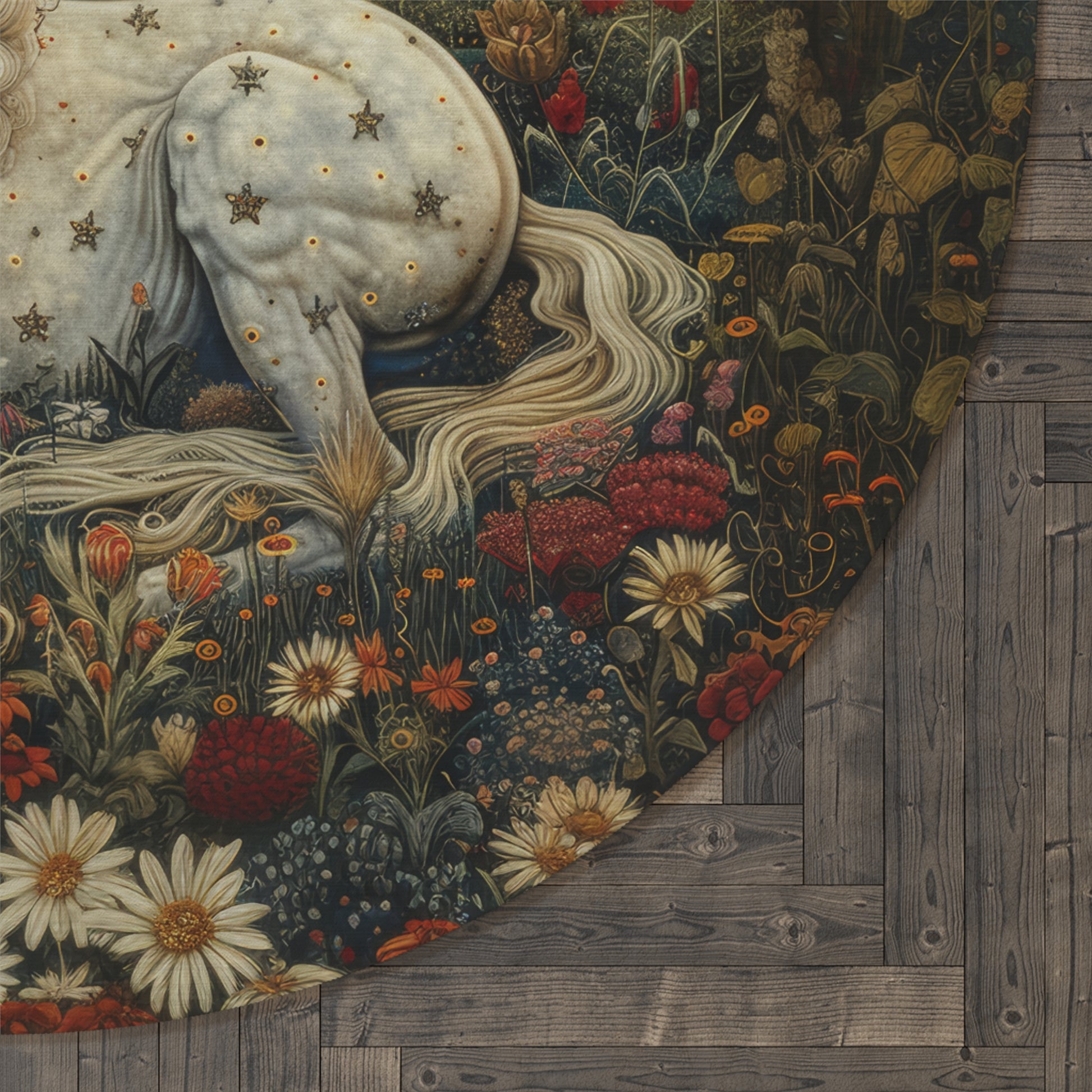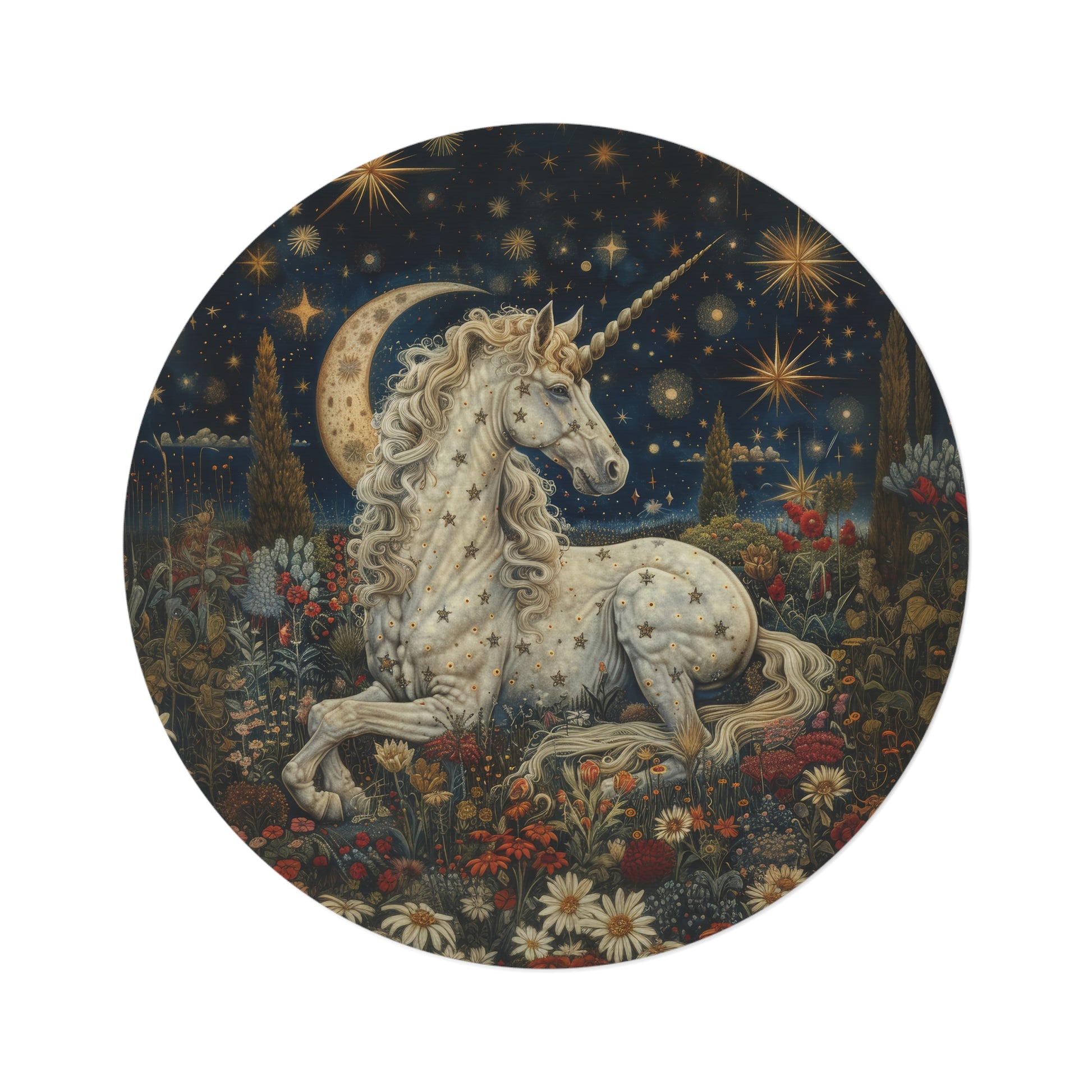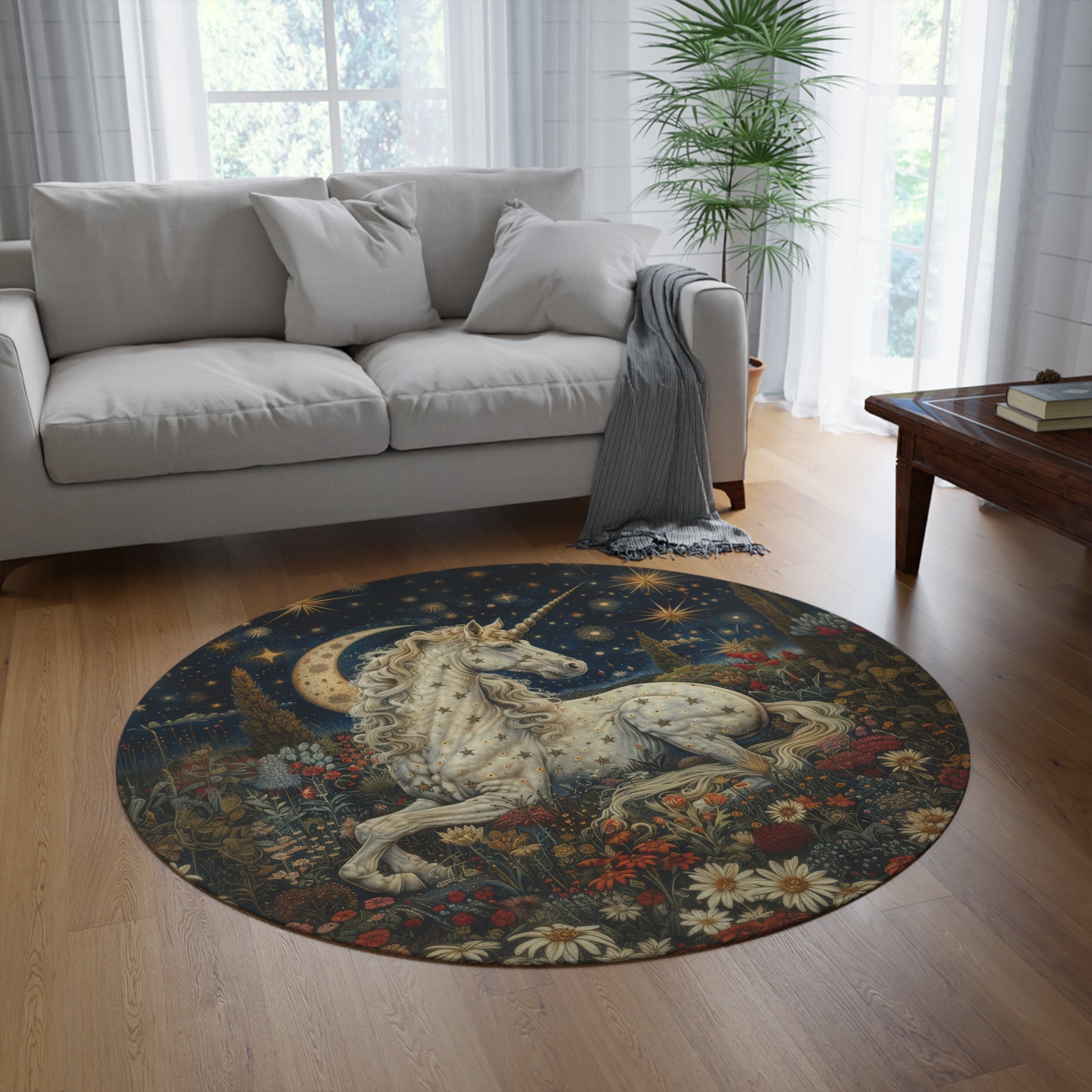 Unicorn Crescent Moon Round Rug, Whimsical Night Area Rug, White Unicorn Rug, Nursery Decor, Playroom Rug, Bedroom Rug