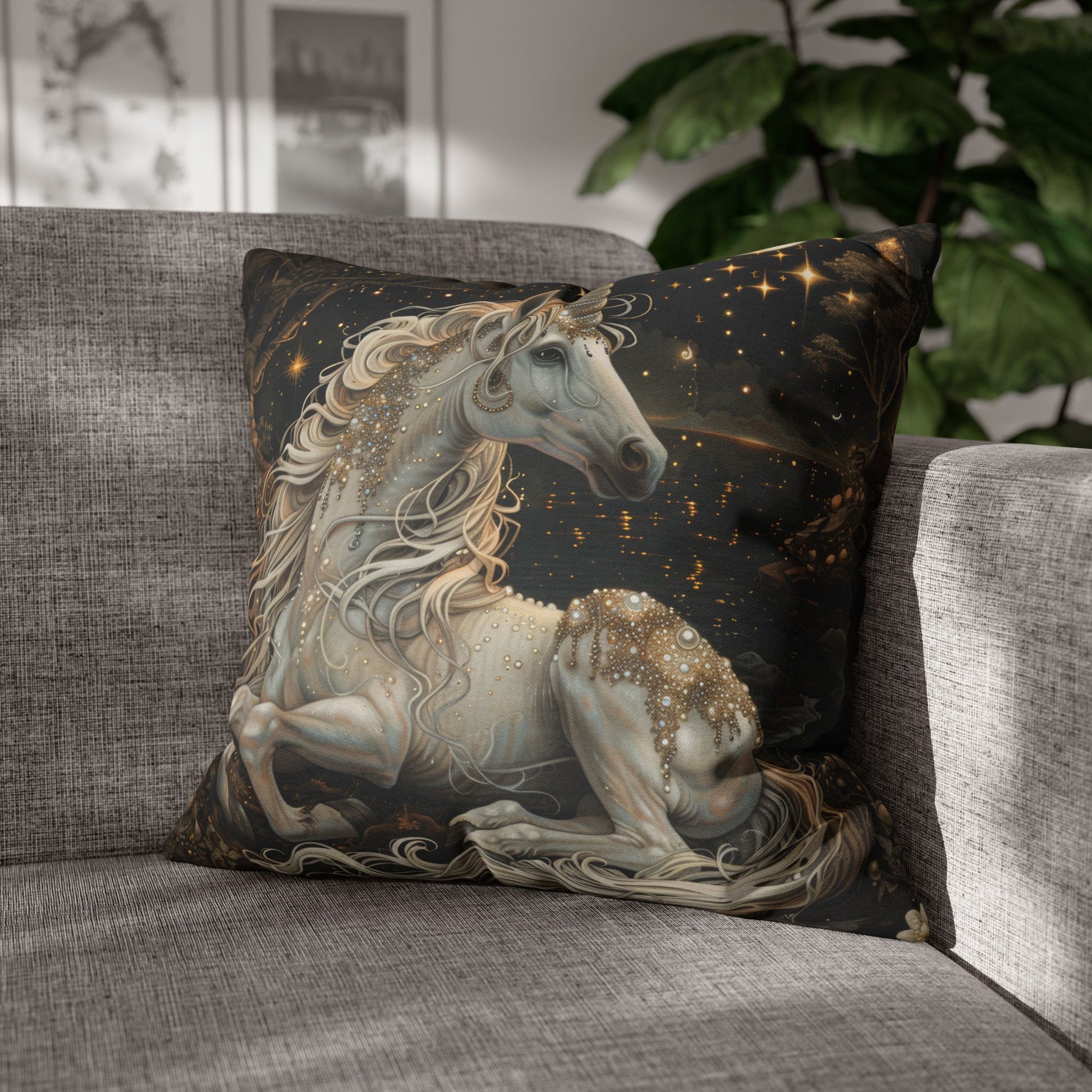 Add a touch of whimsy and magic to your home with this enchanting square pillowcase. Perfect for fans of fantasy and mythical creatures, this pillowcase features a stunning double-sided print showcasing a majestic unicorn surrounded by a shimmering night sky. Its charming design easily complements various decor styles, from bohemian to modern, making it a versatile addition to any room. Ideal for cozying up on your sofa or bringing a playful element to your bedroom, this pillowcase creates a warm and inviting atmosphere. It's a wonderful choice for gifting during holidays like Christmas, birthdays, or any celebration that calls for a sprinkle of magic. Whether for yourself or a loved one, this pillowcase promises to inspire joy and comfort in everyday life.