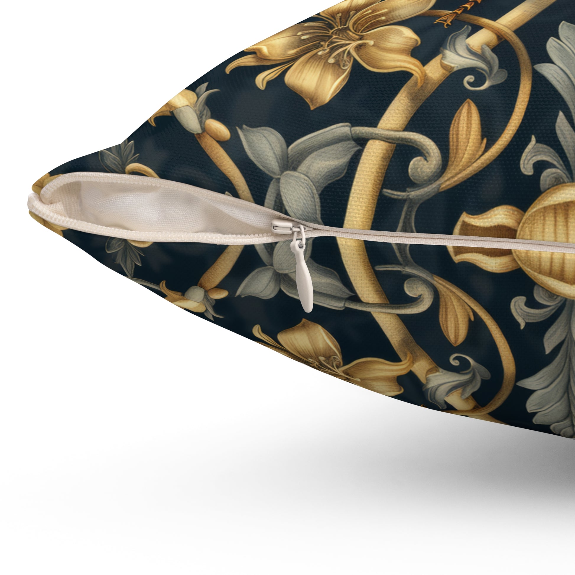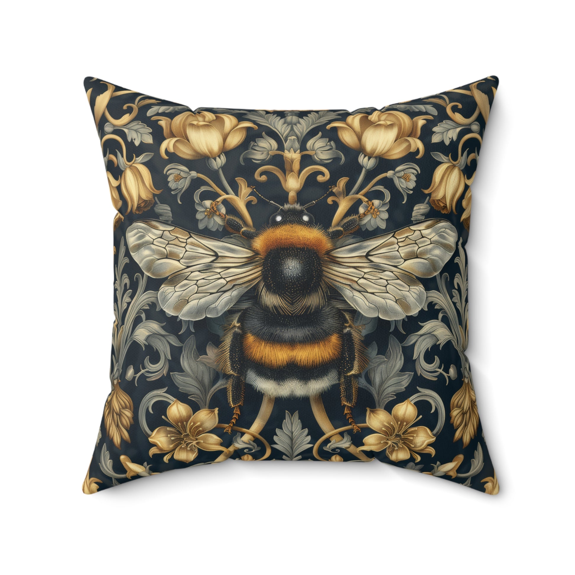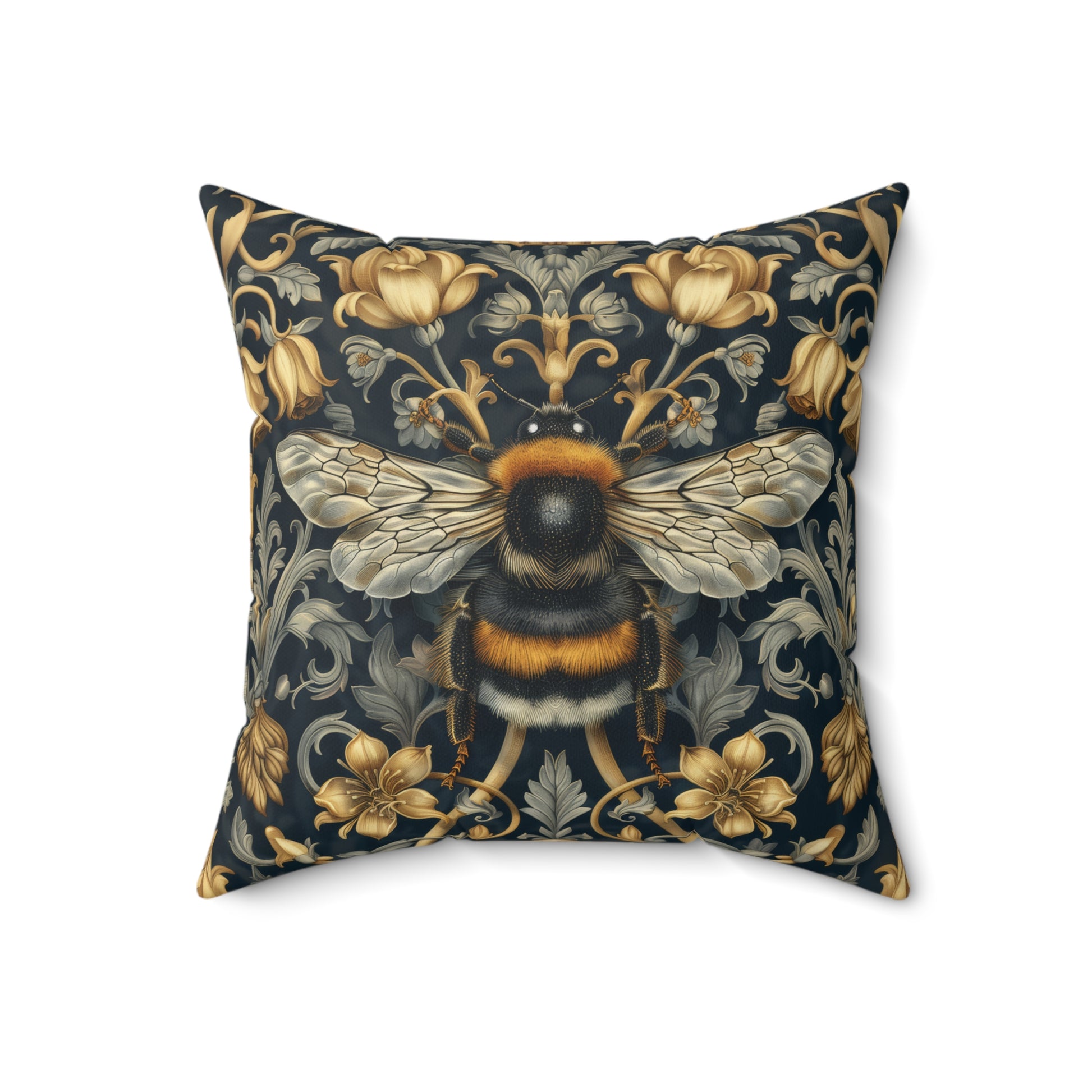This Victorian Art Inspired Bumblebee Baroque Gold Flora Pillow exudes a luxurious and elegant vibe, perfect for adding a touch of sophistication to any room. It is ideal for those who appreciate intricate designs and vintage aesthetics. This pillow is relevant for home decor, housewarming gifts, and special occasions.