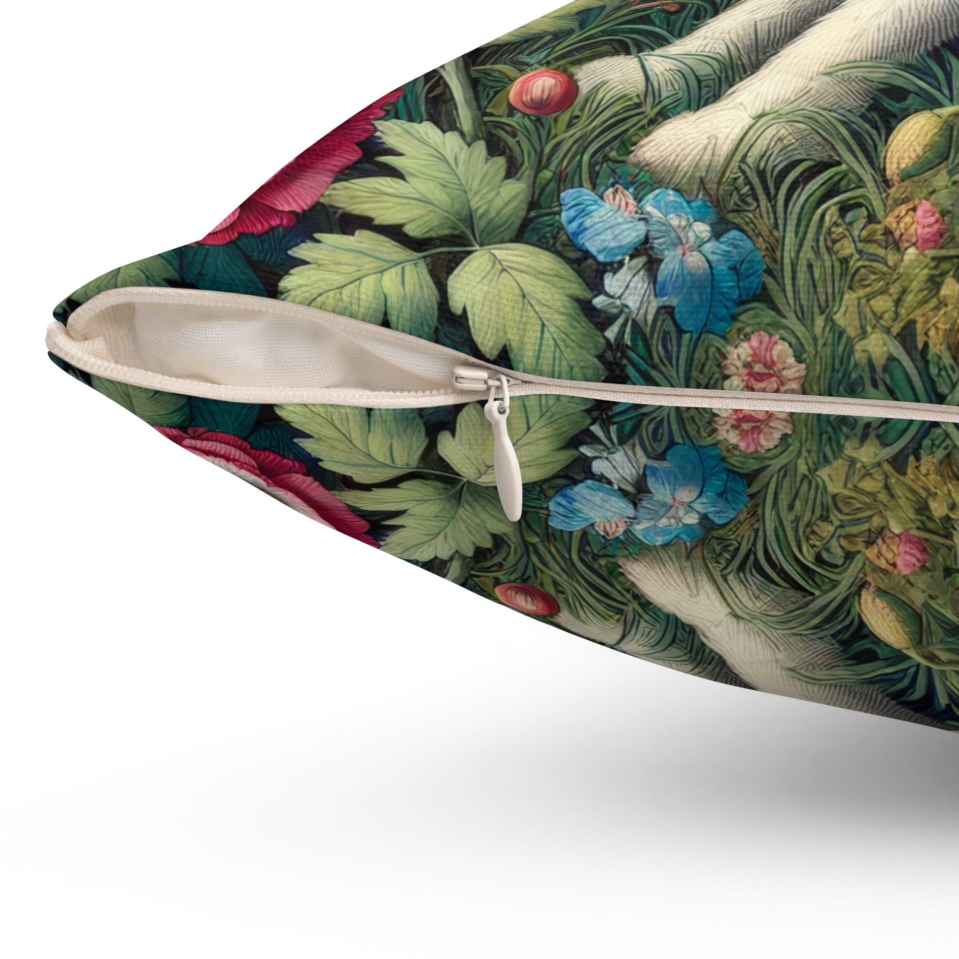 Add a touch of charm and whimsy to your home with this beautiful throw pillow. Featuring a stunning floral design accented with a serene rabbit, this pillow brings a sense of tranquility and nature to your decor. Perfect for cozying up your living room, bedroom, or reading nook, it invites warmth and comfort into any space. Ideal for nature lovers, art enthusiasts, or anyone who appreciates unique home decor. This throw pillow is a great gift for housewarmings, birthdays, or holidays like Easter and Mother's Day, making it a versatile addition to any seasonal celebration.