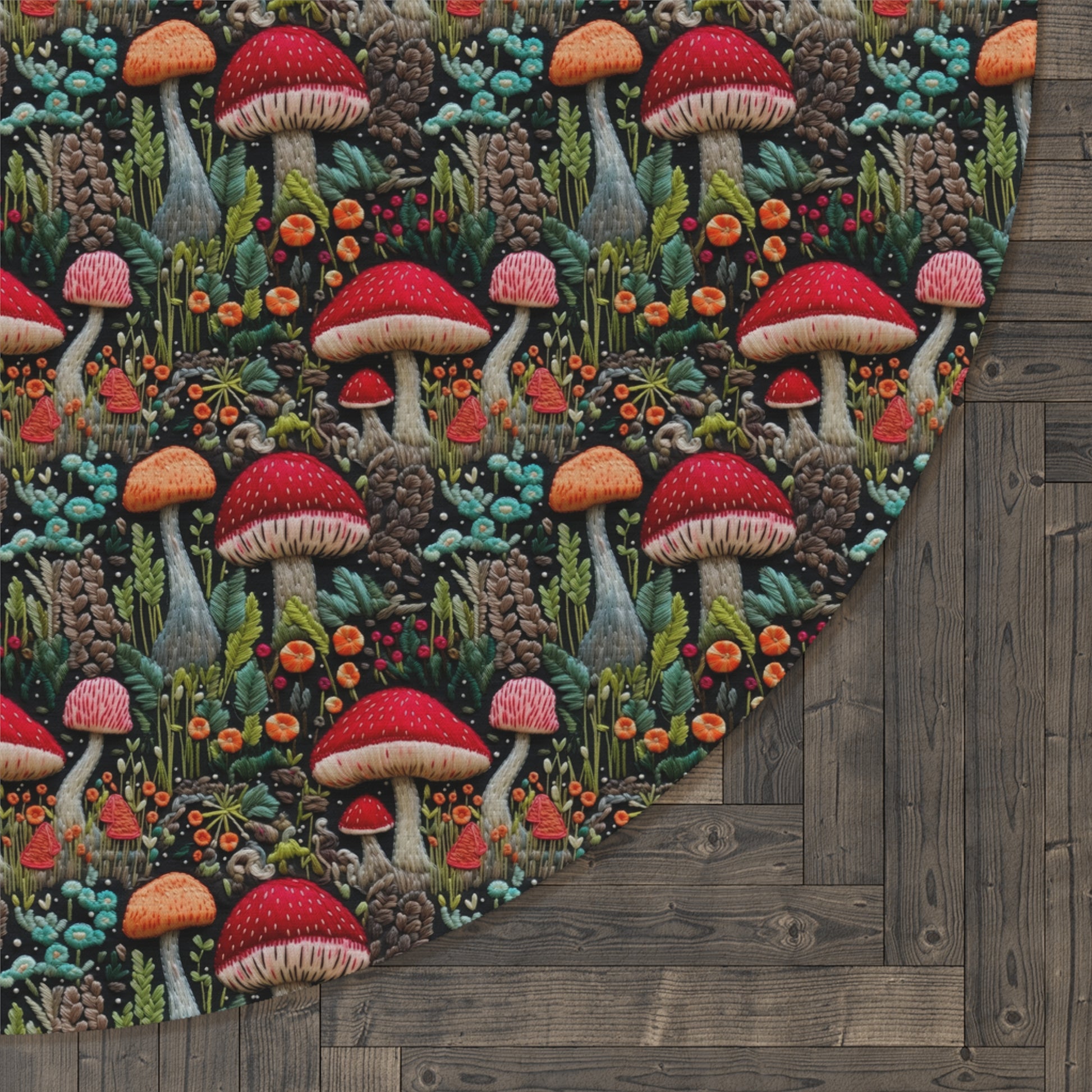 Wild Mushrooms Cottage Embroidery Pattern Round Area Rug, Housewarming Gift