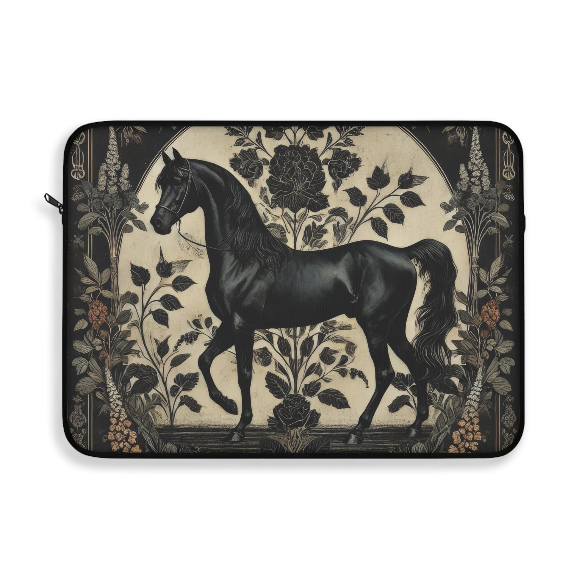 Black Stallion Laptop Sleeve, William Morris Inspired Vintage Horse Art Case, Elegant Floral Laptop Cover (12”, 13”, 15”)