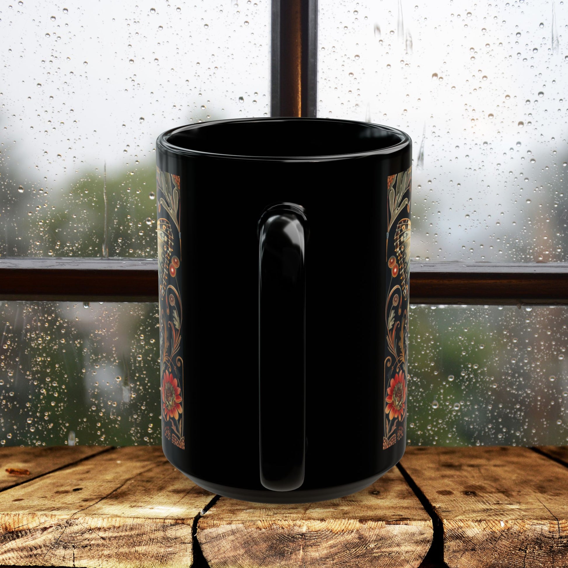 Celebrate the beauty of art and nature with our William Morris Inspired Botanical Butterfly Black Coffee Mug. This elegant design features a richly detailed butterfly surrounded by lush floral patterns in the timeless style of William Morris. The striking contrast of vivid reds, creams, and earthy tones against the glossy black ceramic makes this mug a true statement piece for any collection.