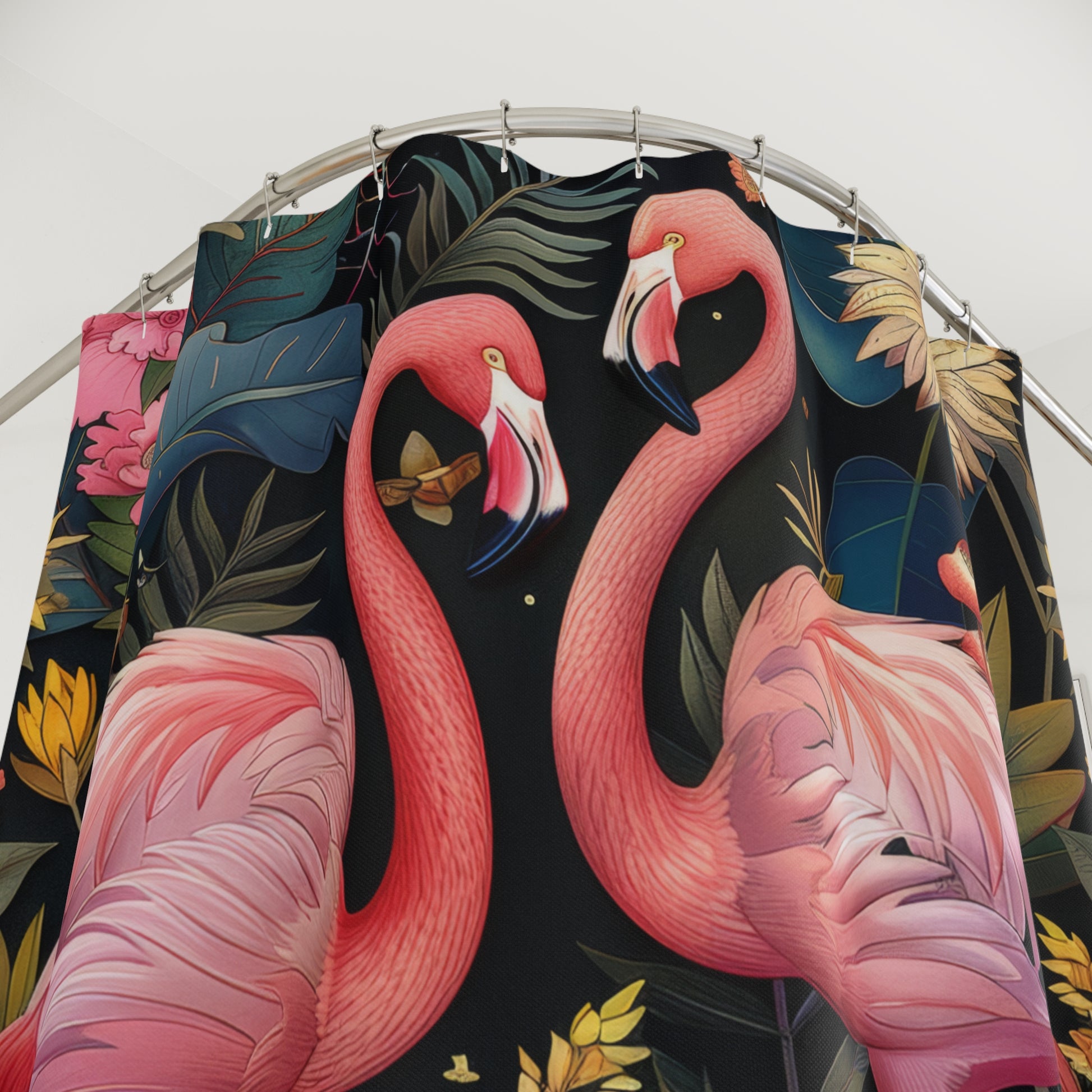 William Morris Inspired Botanical Pattern With Pink Flamingos Polyester Shower Curtain