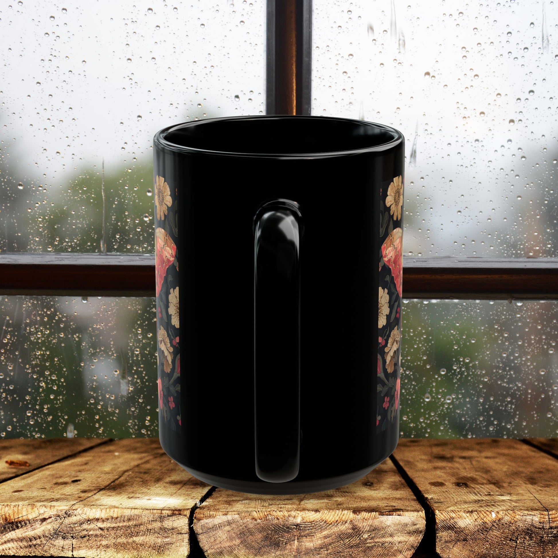 William Morris Inspired Botanical Rosy Maple Moth Black Mug 11oz, 15 oz