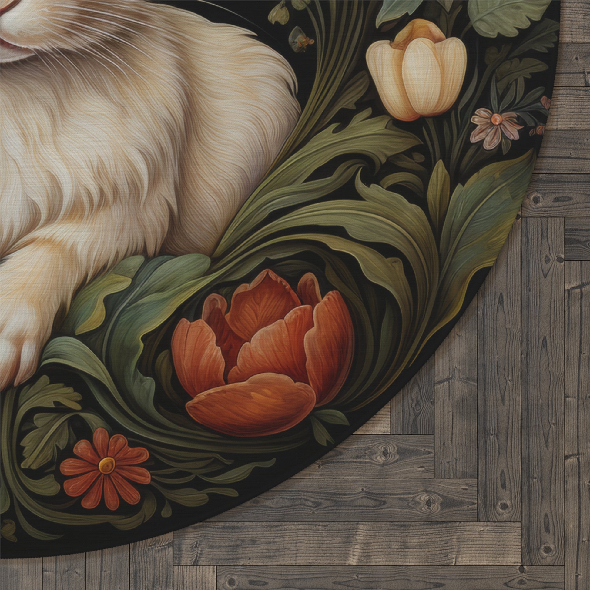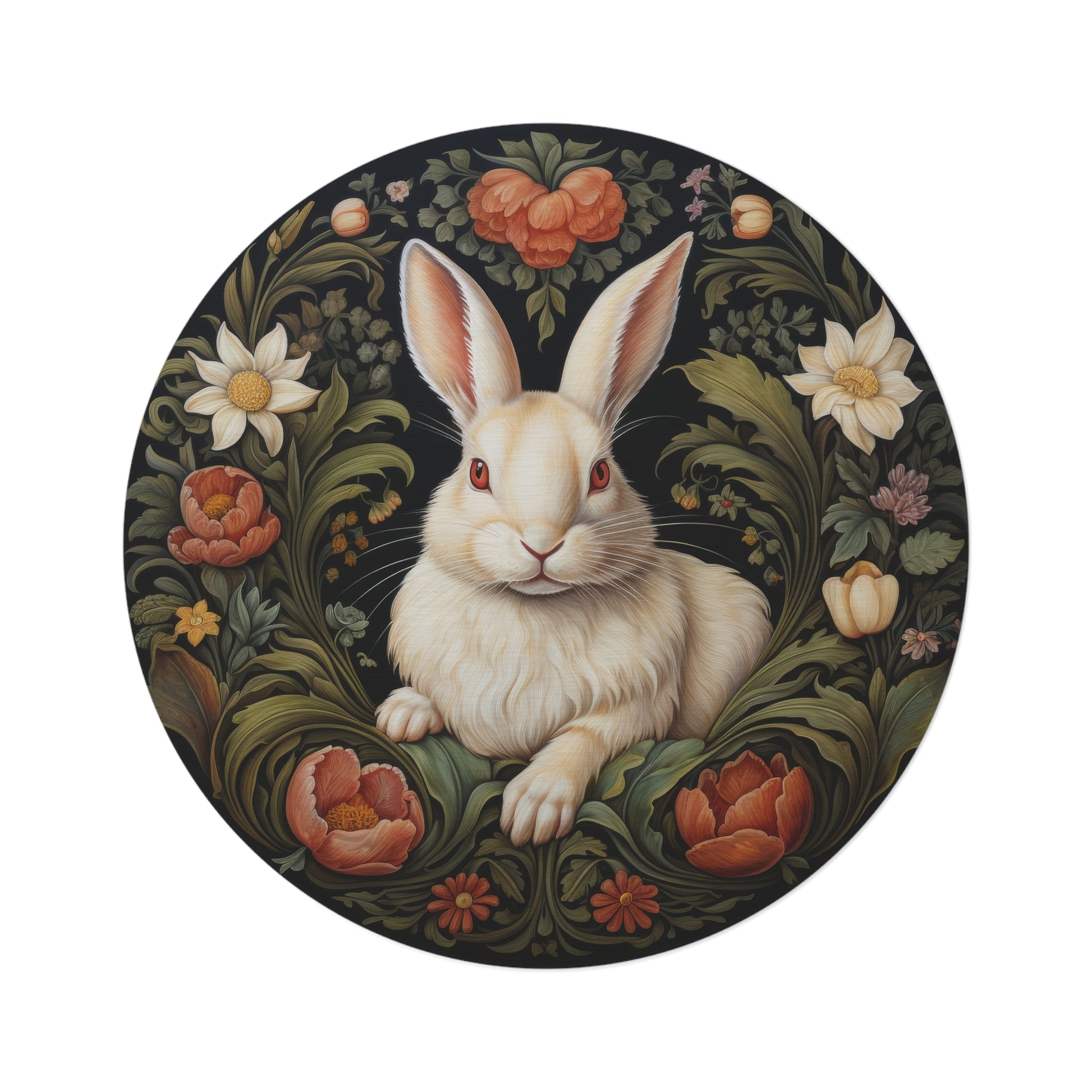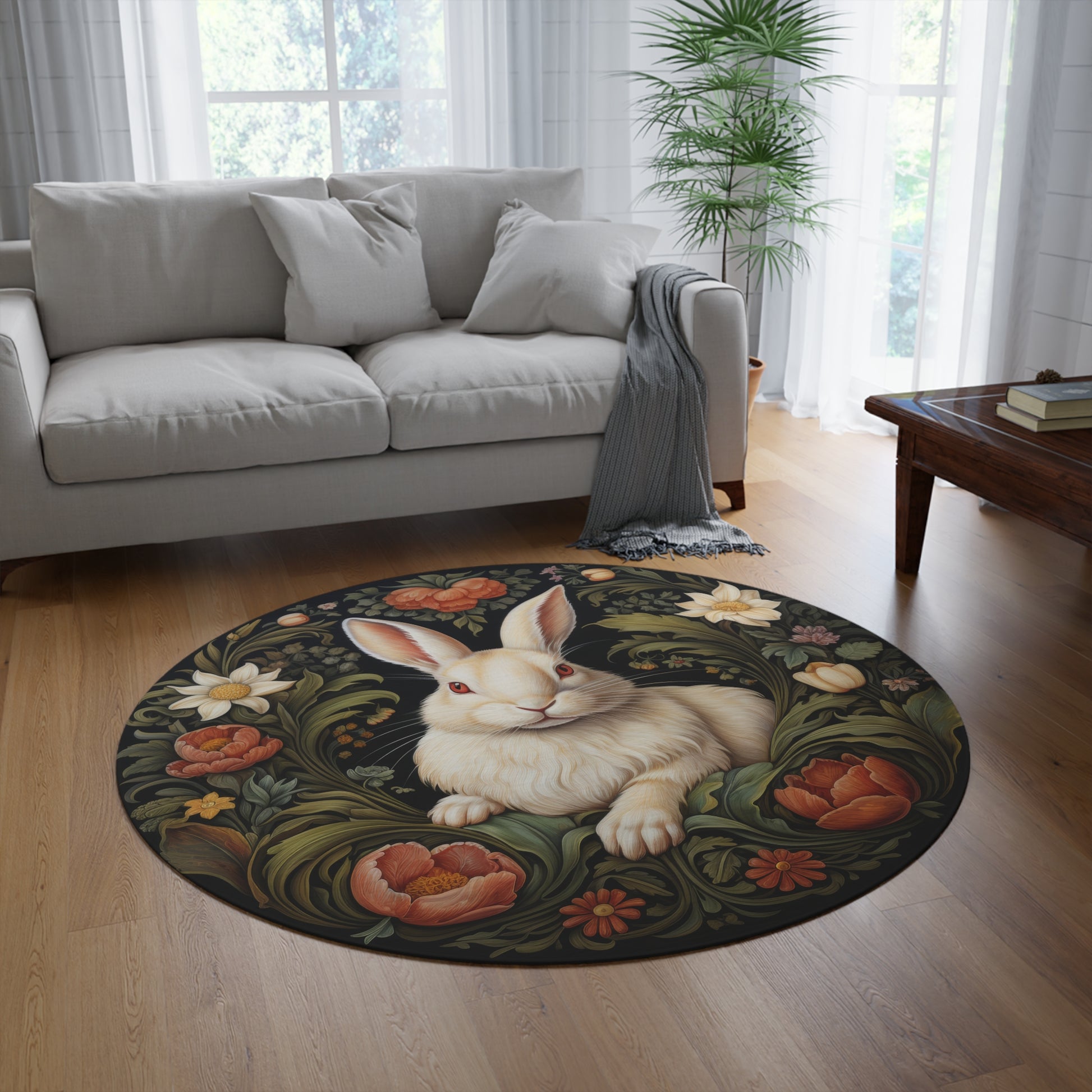 William Morris Inspired Botanical White Rabbit Home Decor, Rabbit Round Area Rug