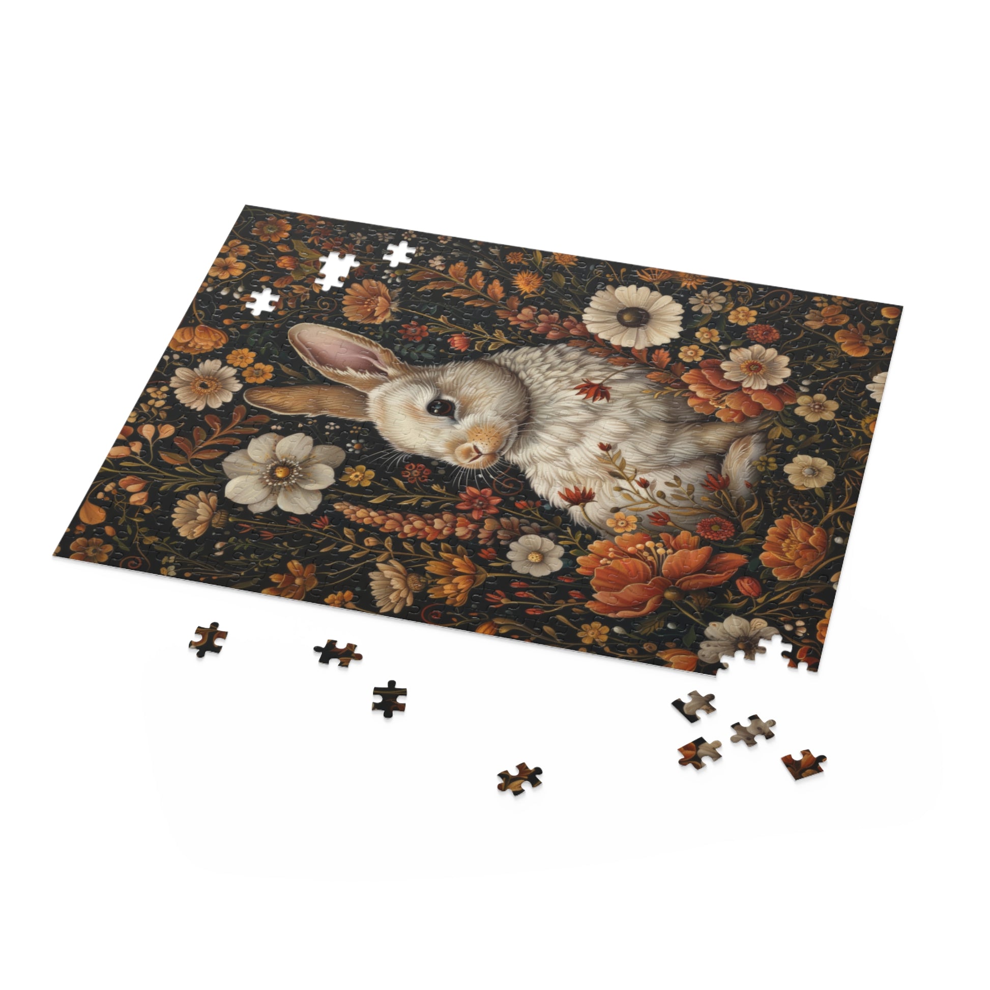 🐰 Fall Floral Bunny Puzzle – Cottagecore Botanical Jigsaw (120, 252, 500, 1000 Pieces)