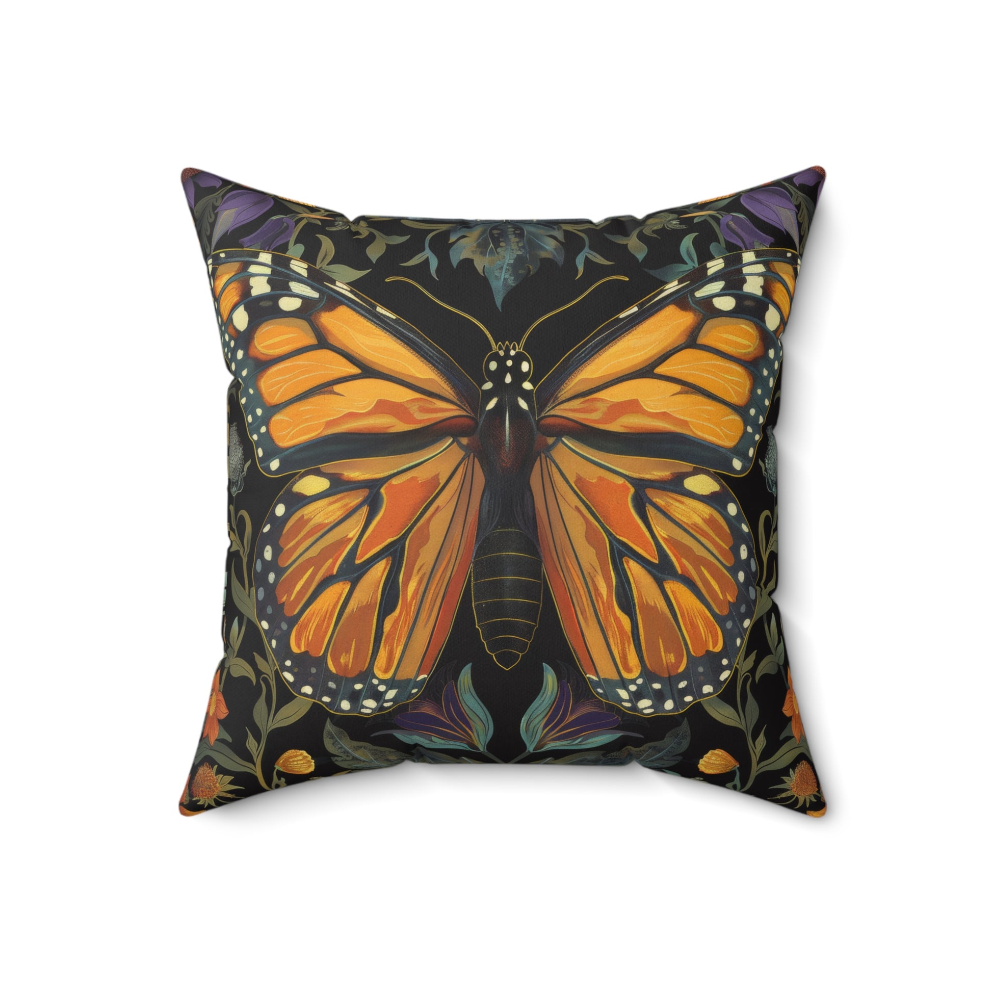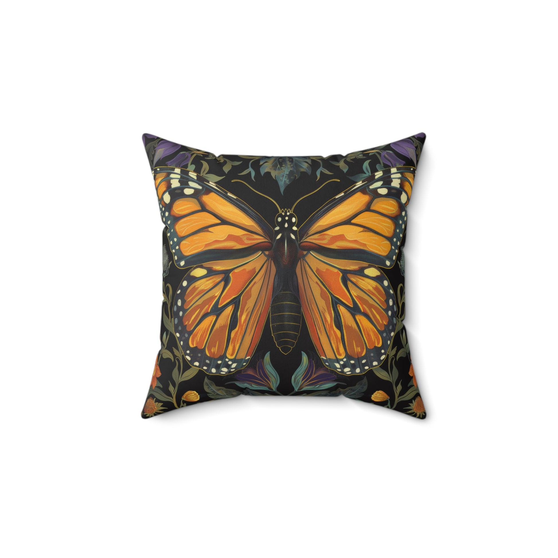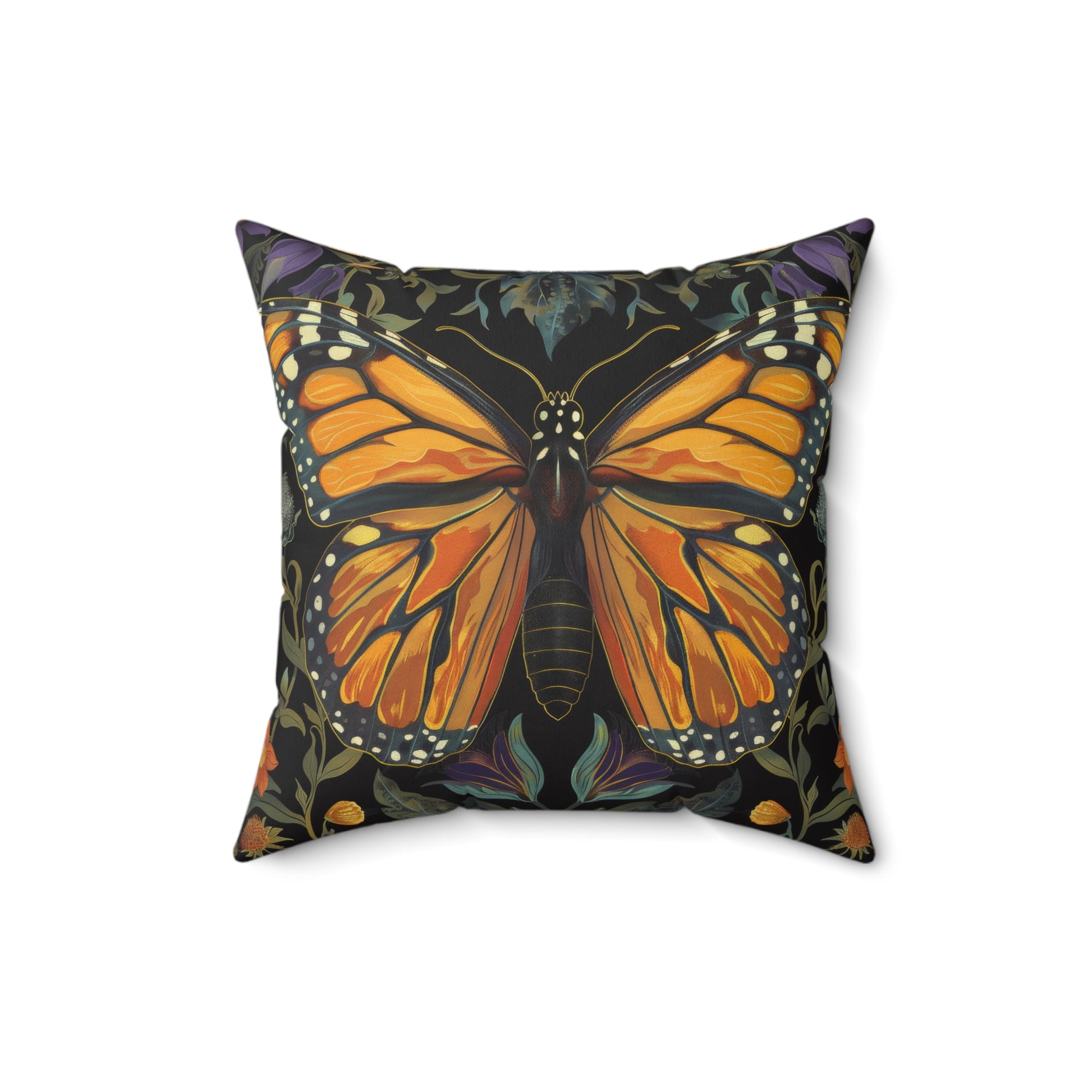 William Morris Inspired Monarch Butterfly Pillow, Decorative Monarch Butterfly Cushion, Spun Polyester Square Pillow