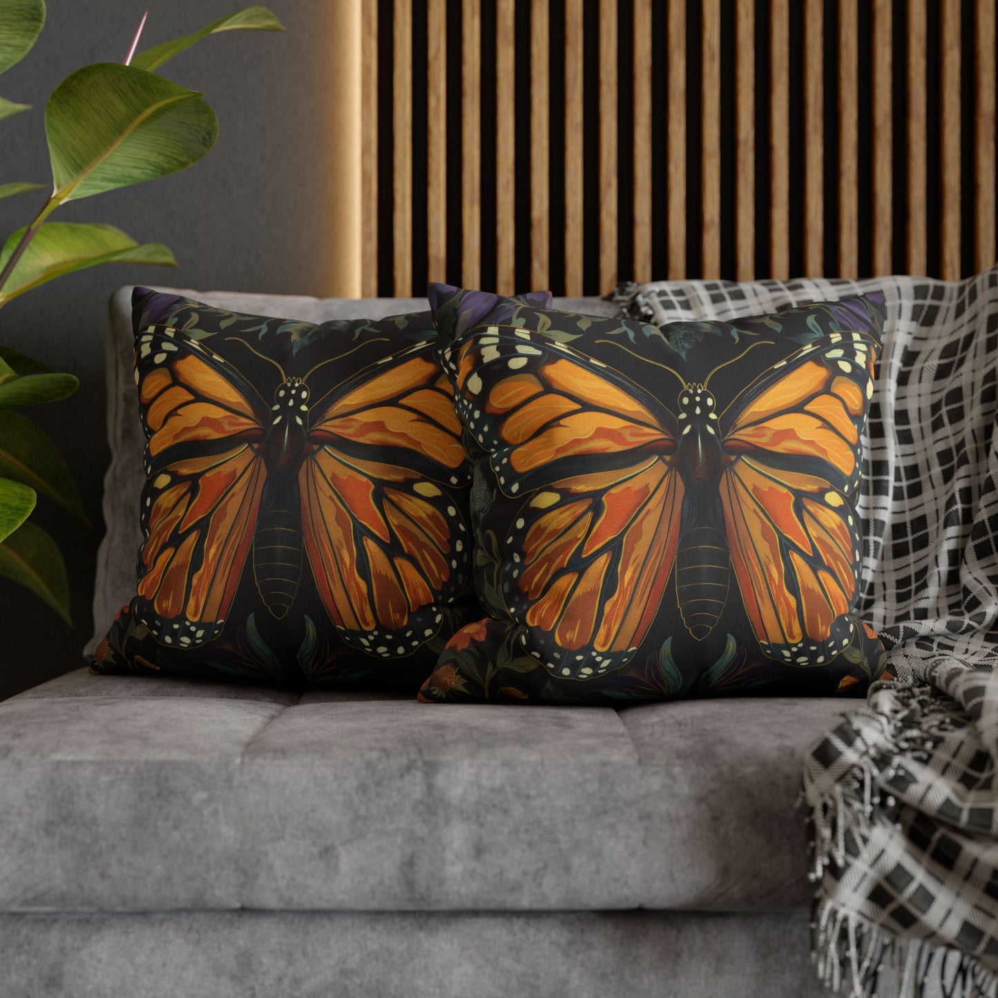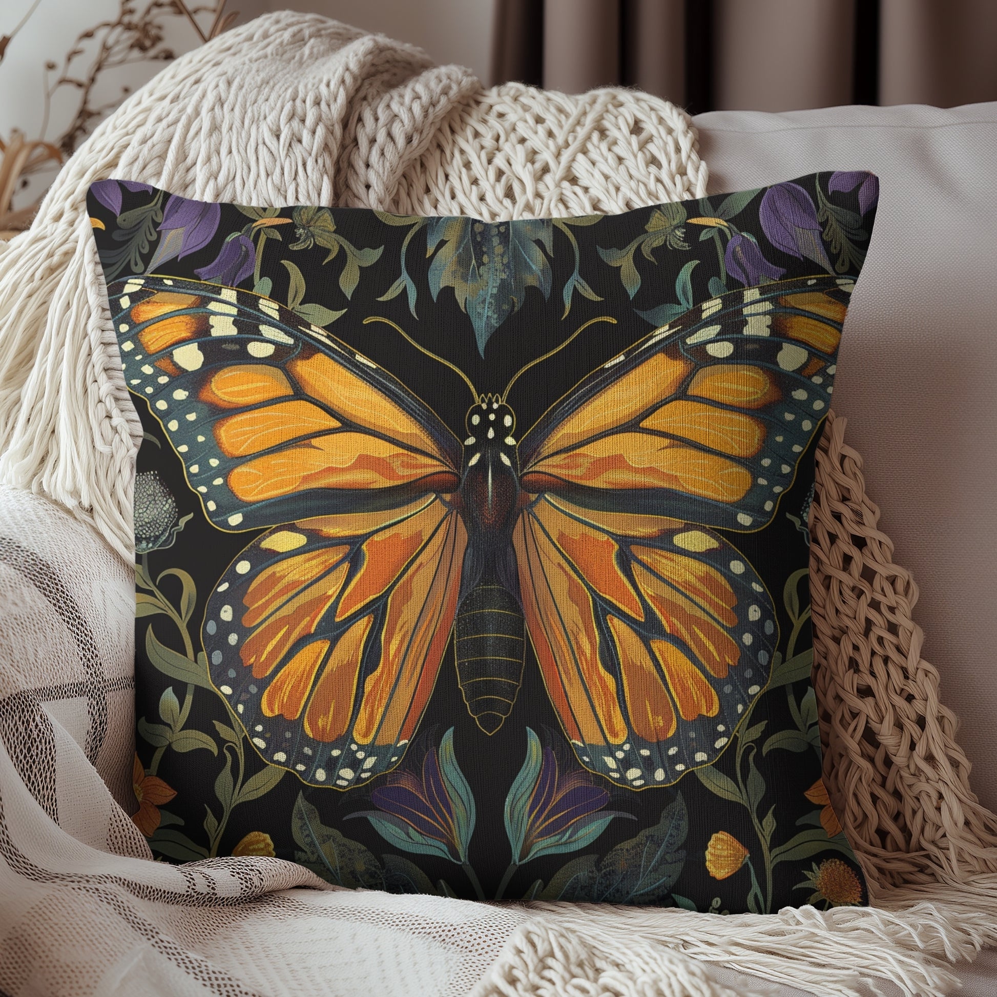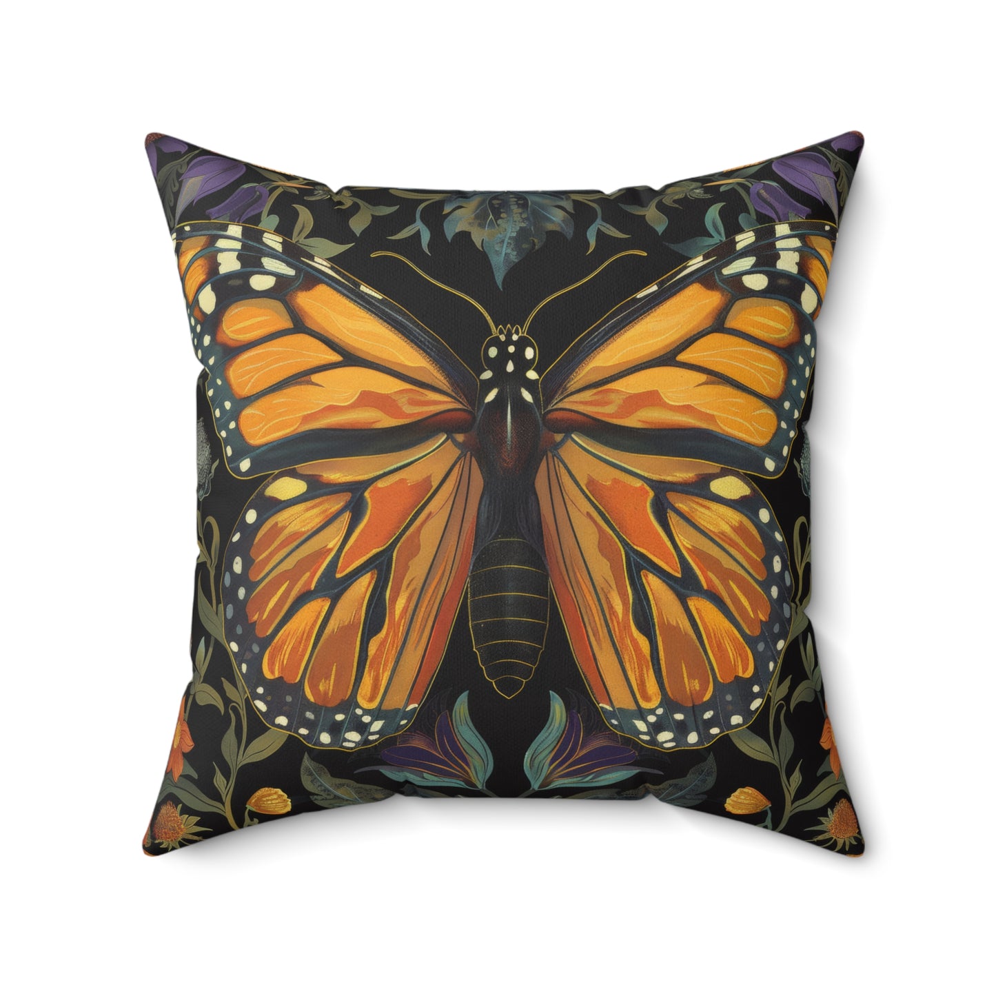 William Morris Inspired Monarch Butterfly Pillow, Decorative Monarch Butterfly Cushion, Spun Polyester Square Pillow