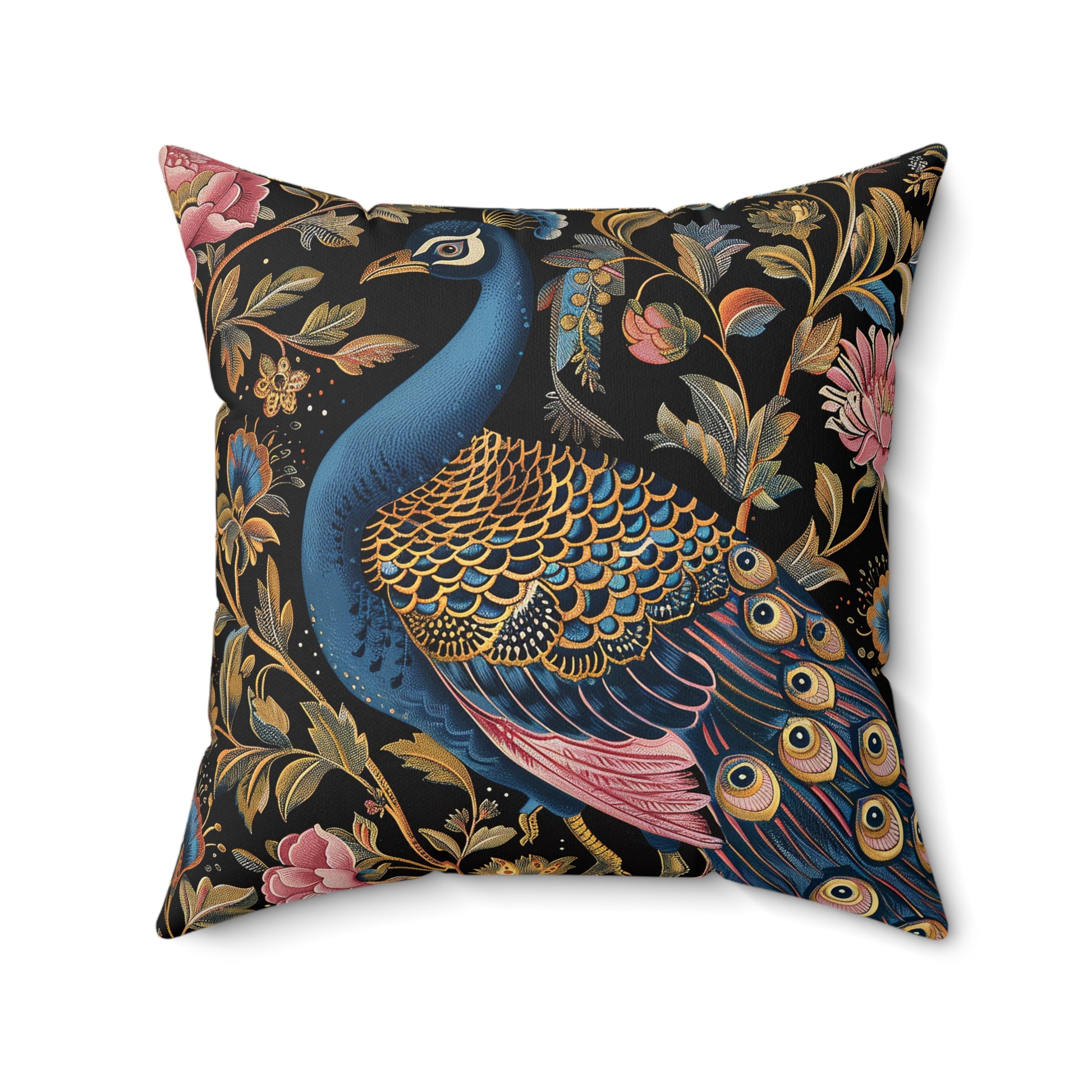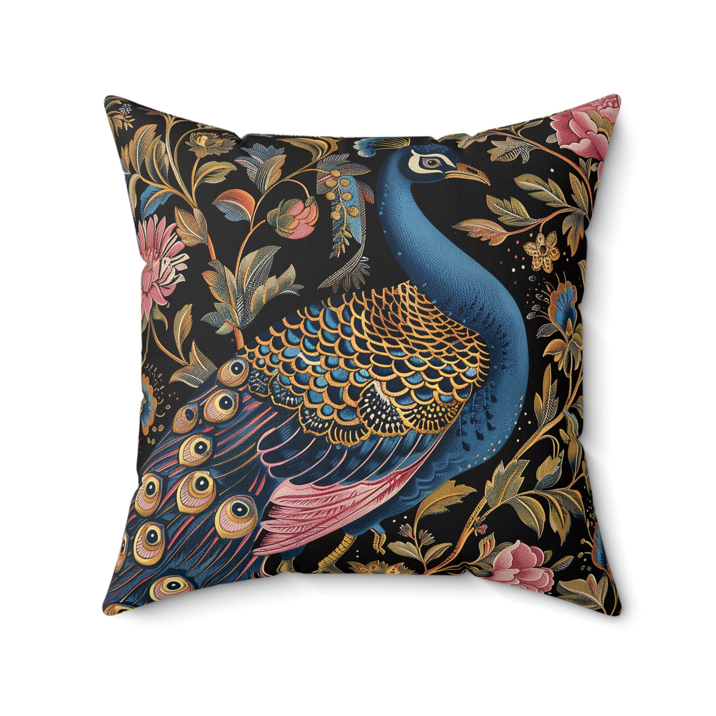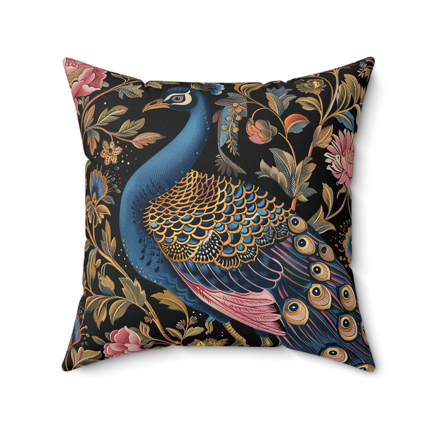 William Morris Inspired Peacock Pillow, Forest Floral Art, Decorative Peacock Spun Polyester Square Pillow