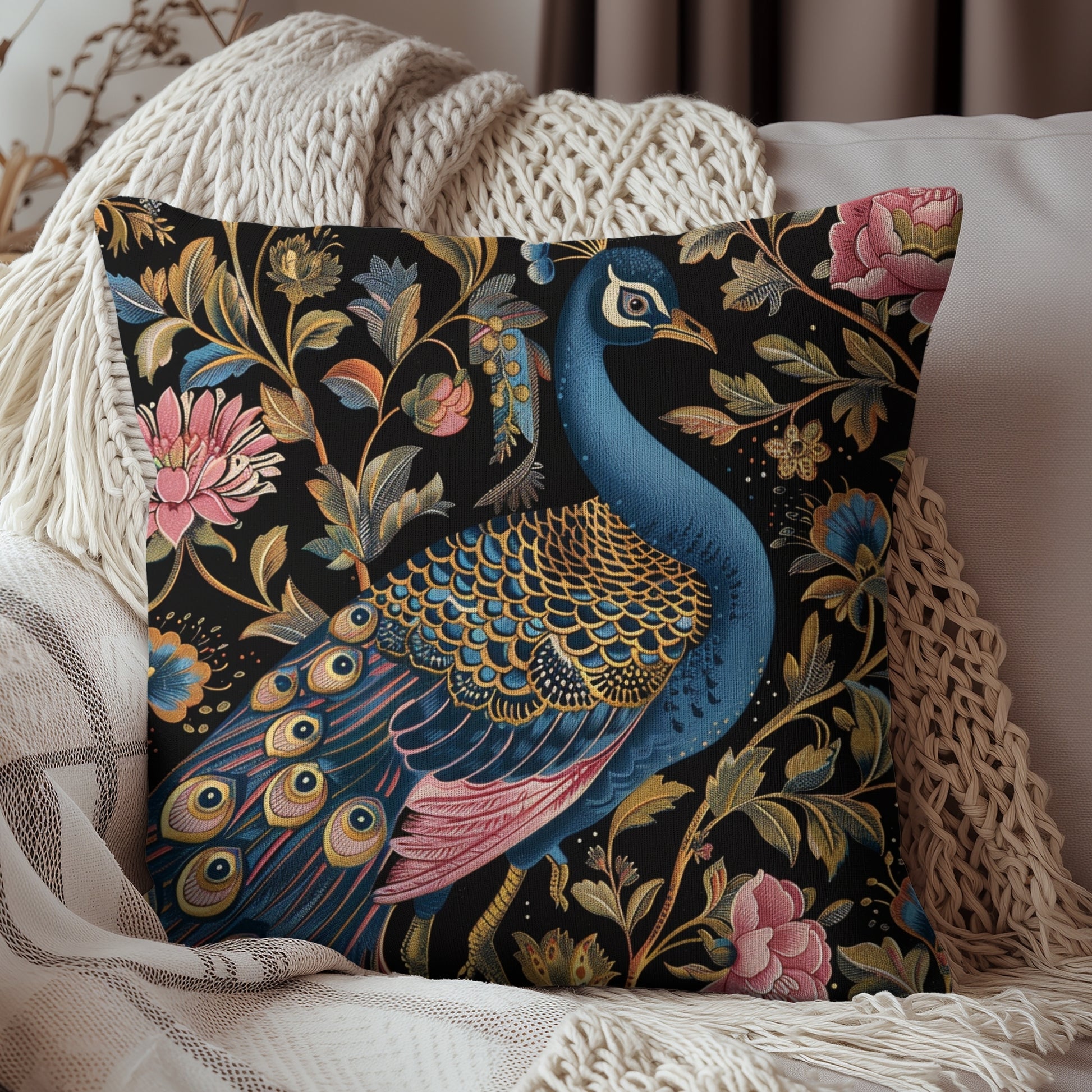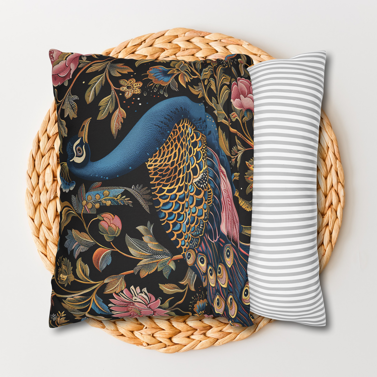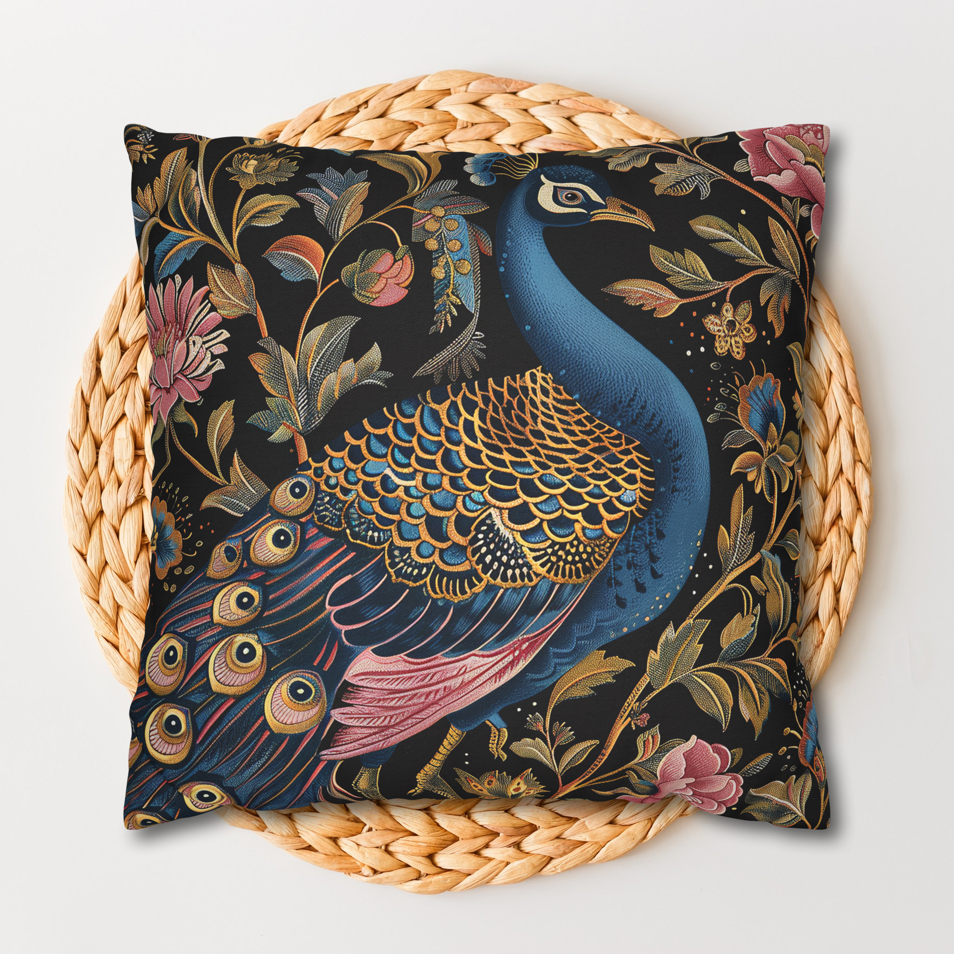 William Morris Inspired Peacock Pillow, Forest Floral Art, Decorative Peacock Spun Polyester Square Pillow