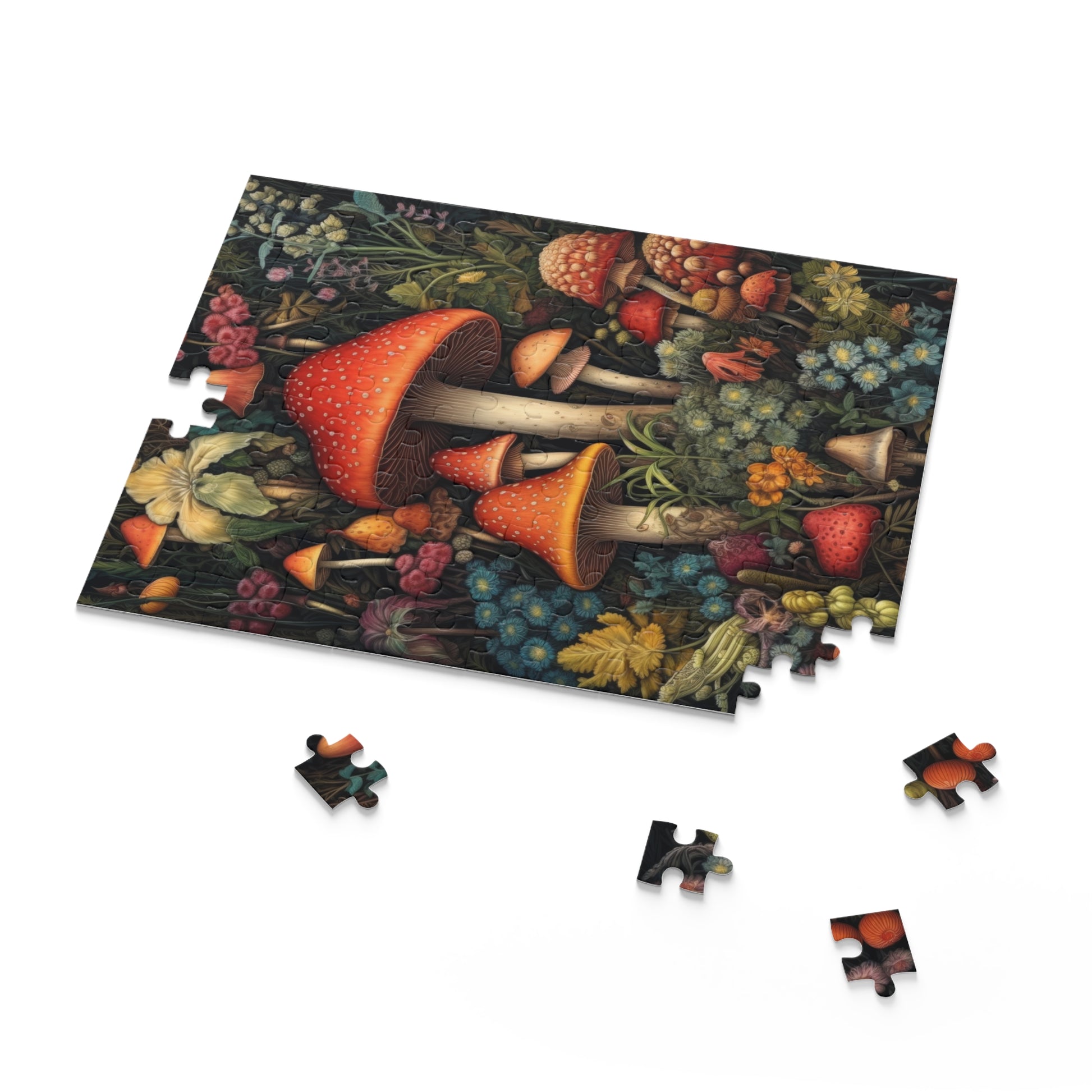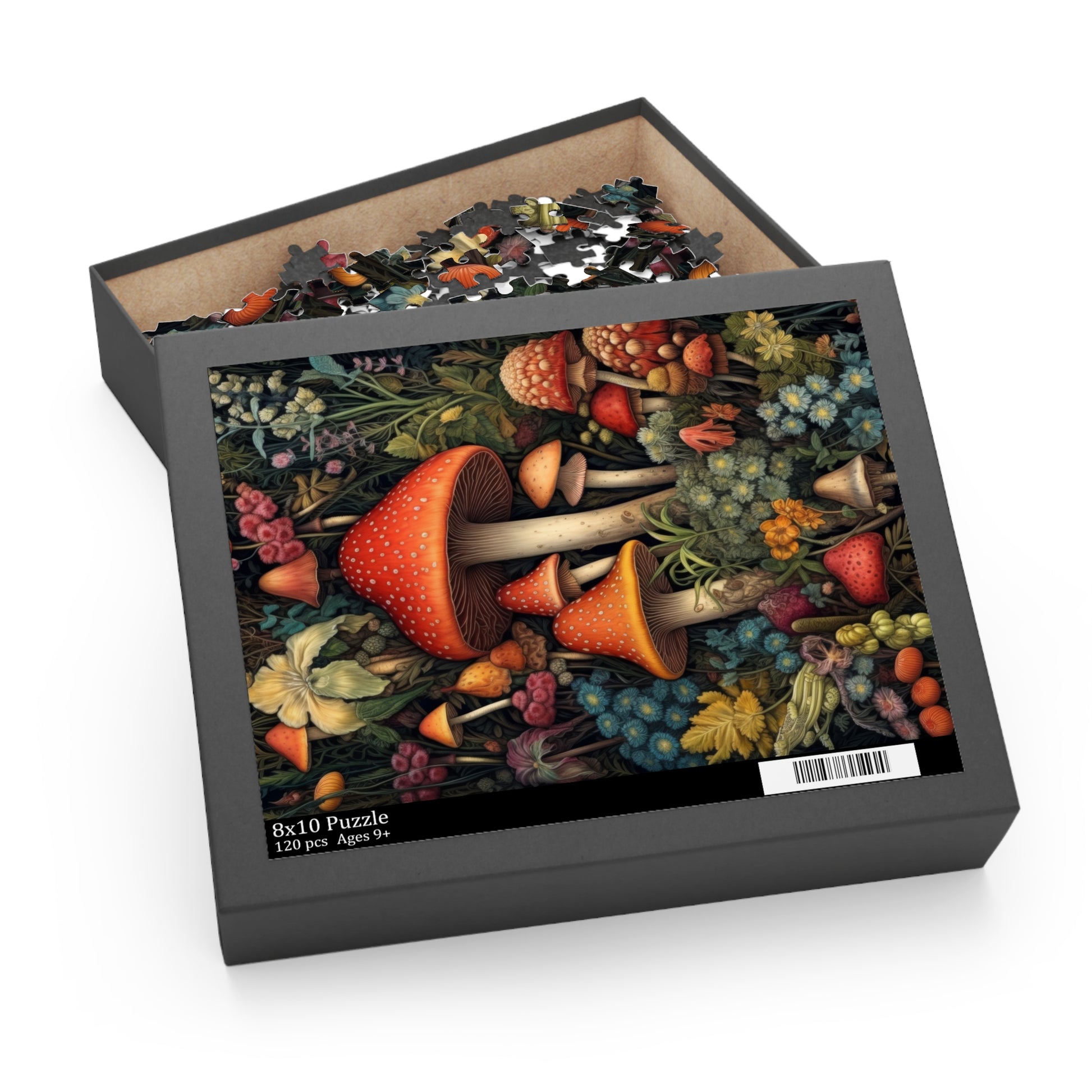 William Morris Inspired Wild Mushroom Jigsaw Puzzle (120, 252, 500-Piece) Gift-Ready Box, Adult Jigsaw Puzzle