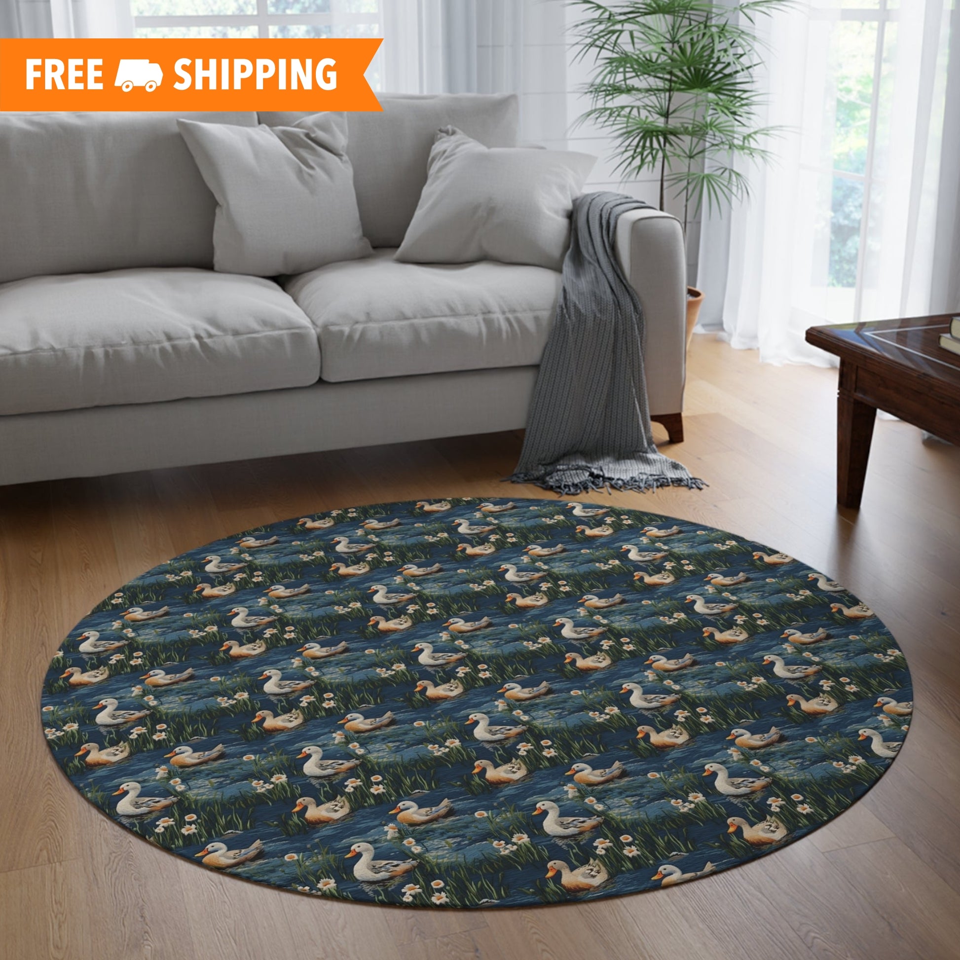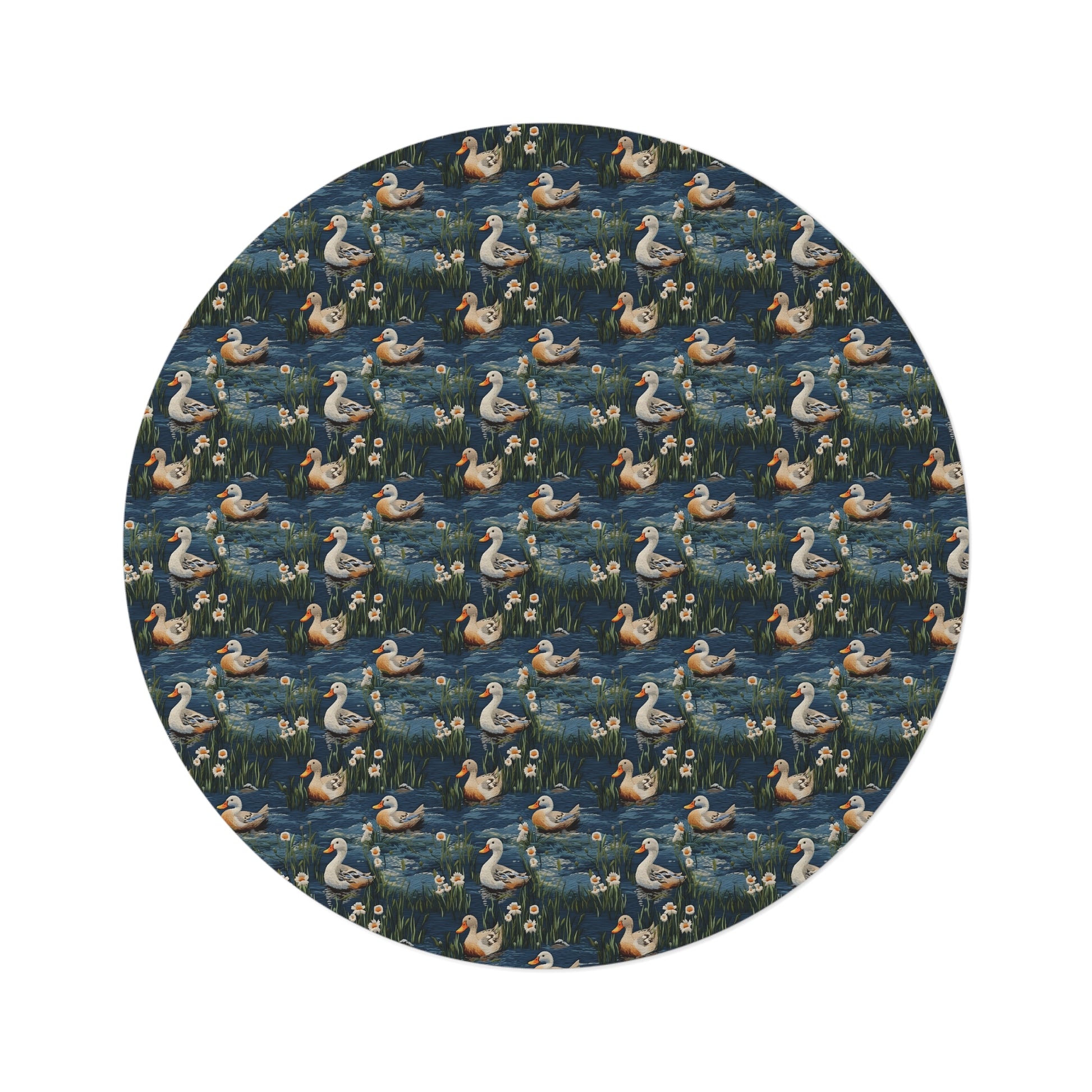 Woodland Ducks Embroidery Pattern Round Area Rug